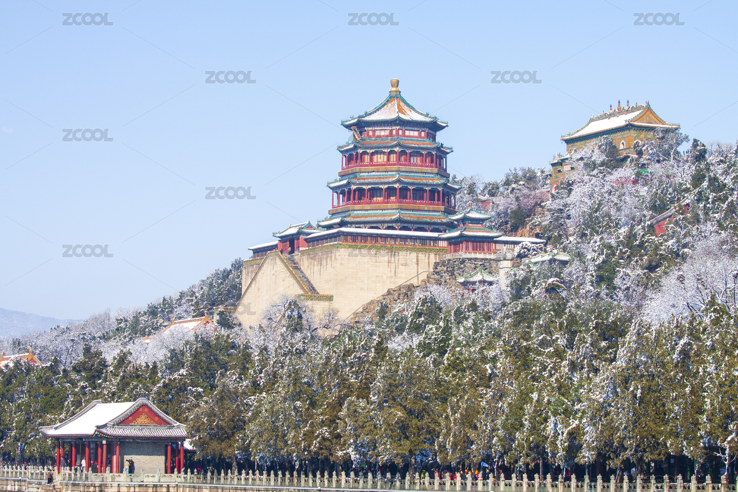 颐和园,雪,雪景,名胜古迹,文化遗产,佛香阁,昆明湖,特写,局部,万寿山