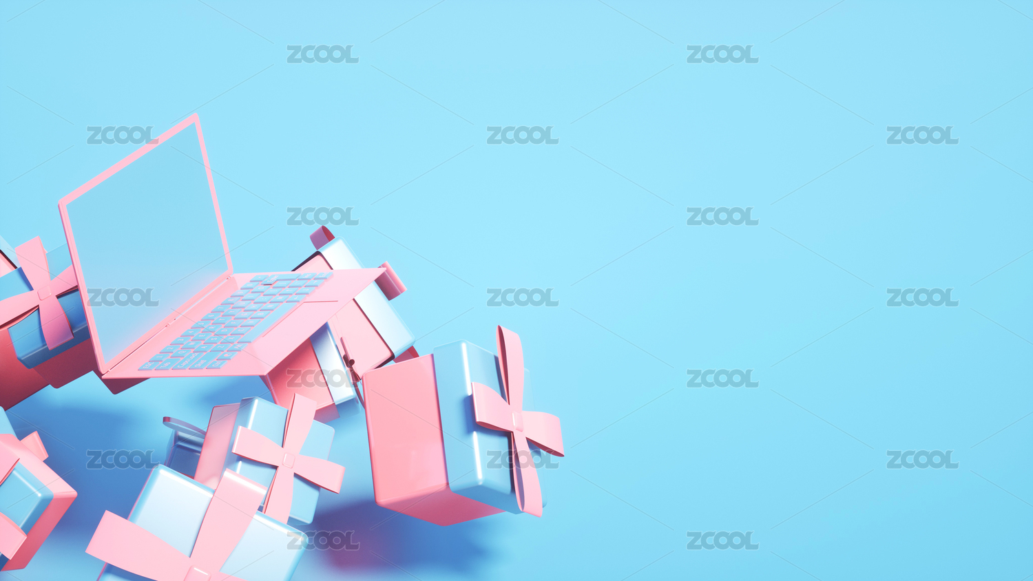 商业,电脑,礼盒,礼物,网购,概念,场景,抽象,笔记本,很多