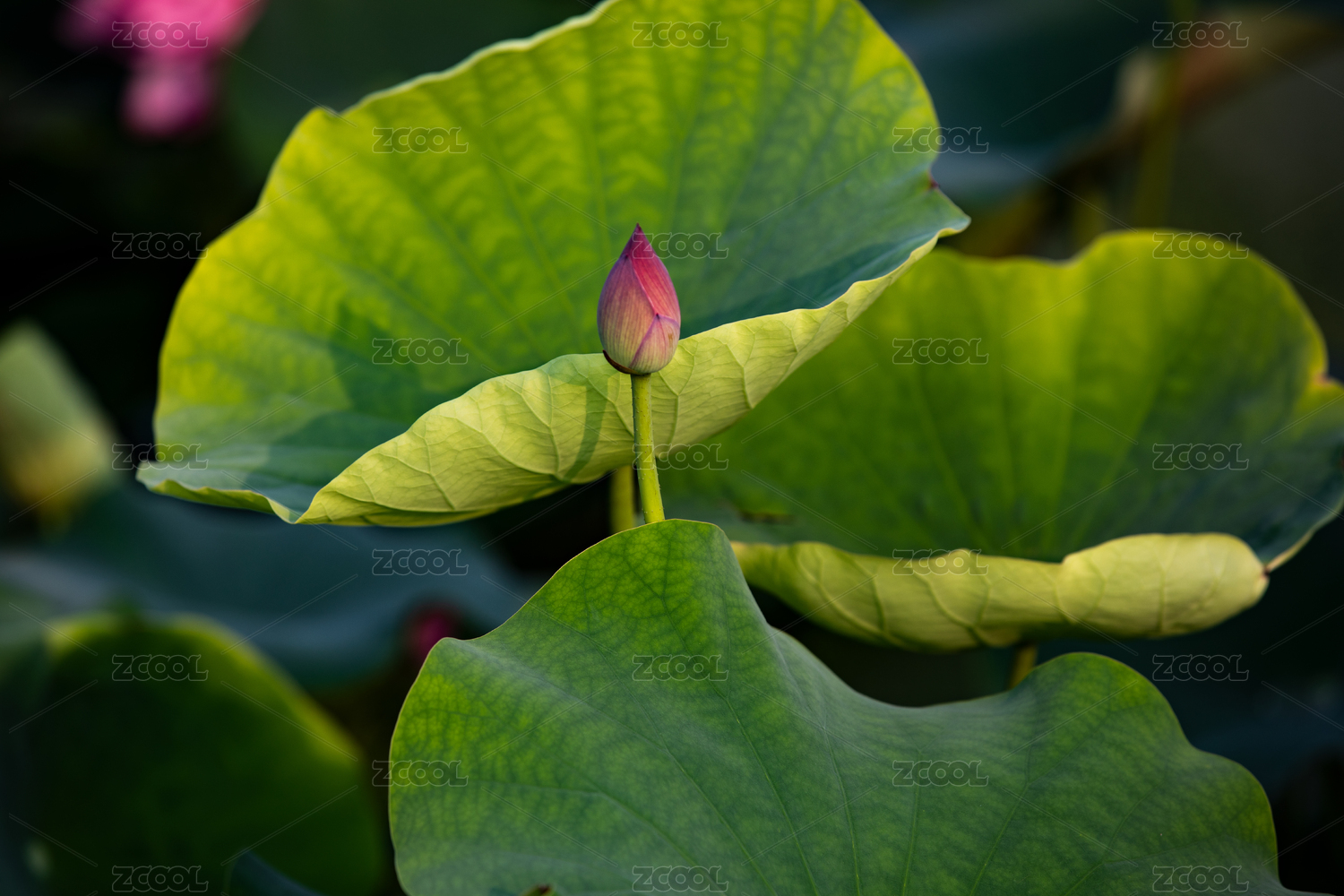 荷花苞投影在荷叶上