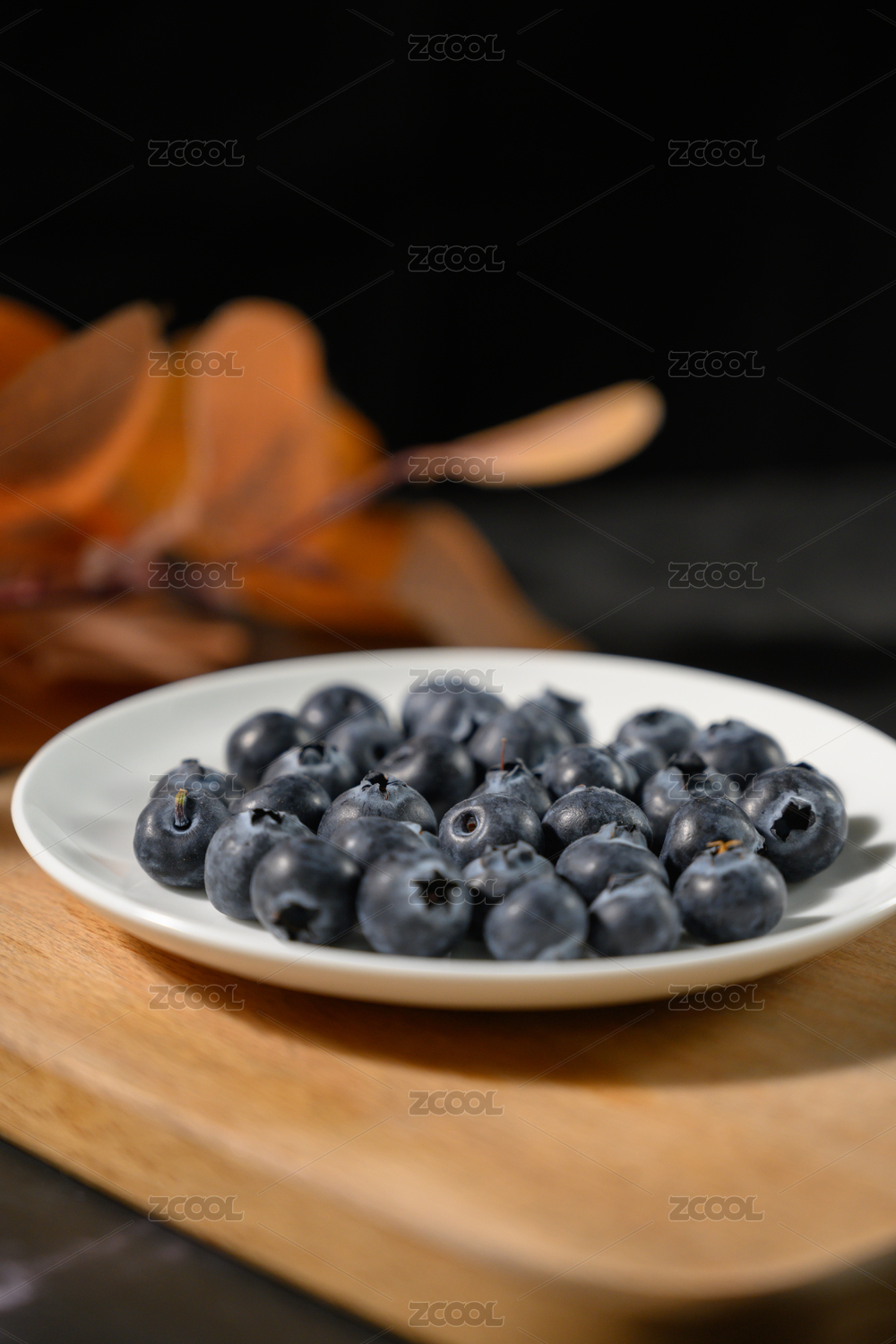 桌面上的盘子里的美味可口的蓝莓