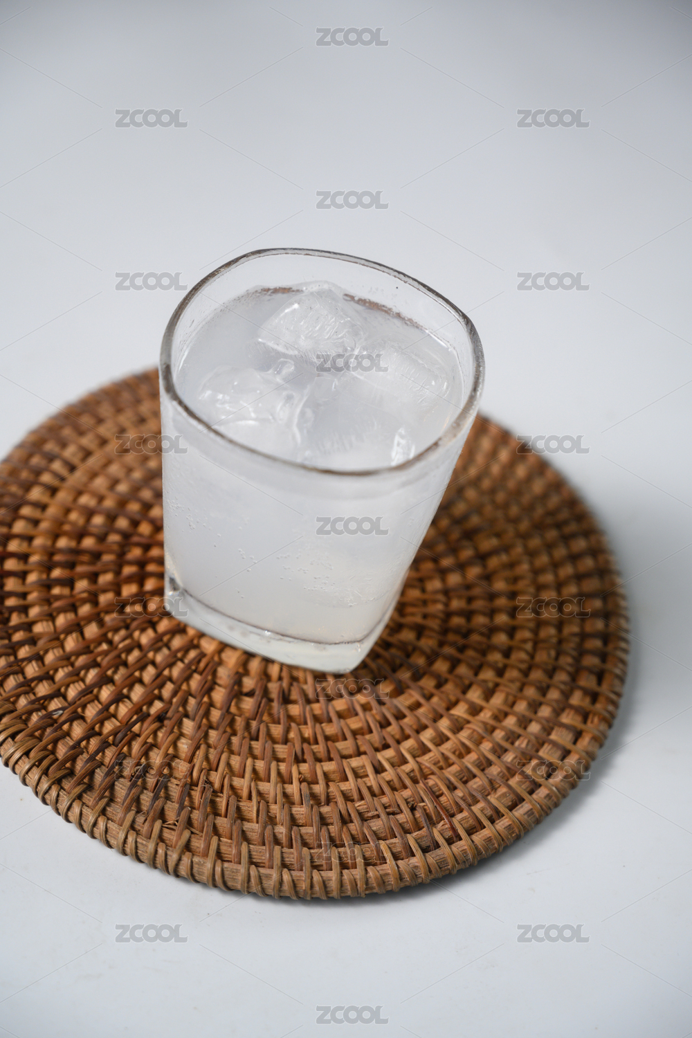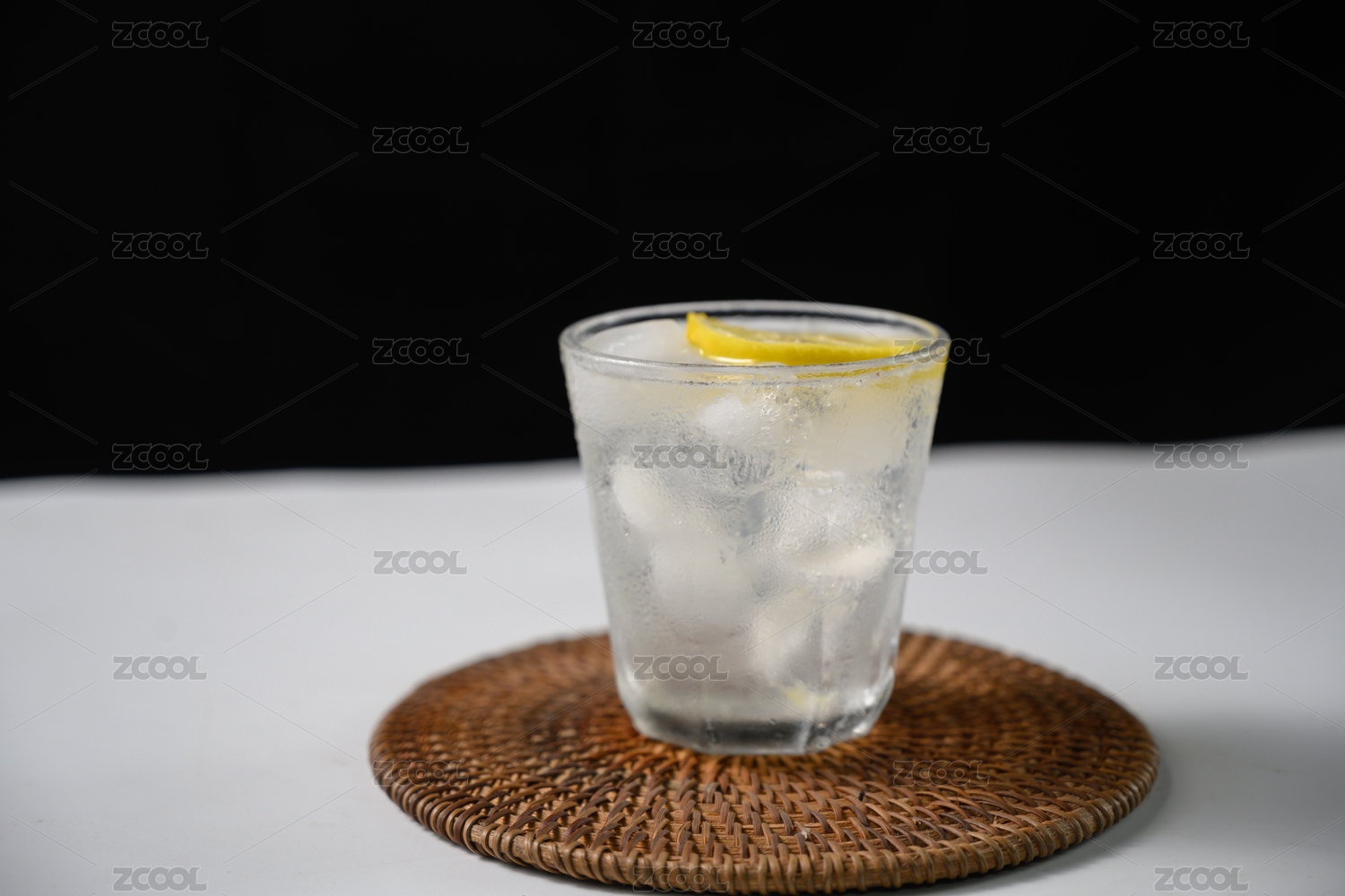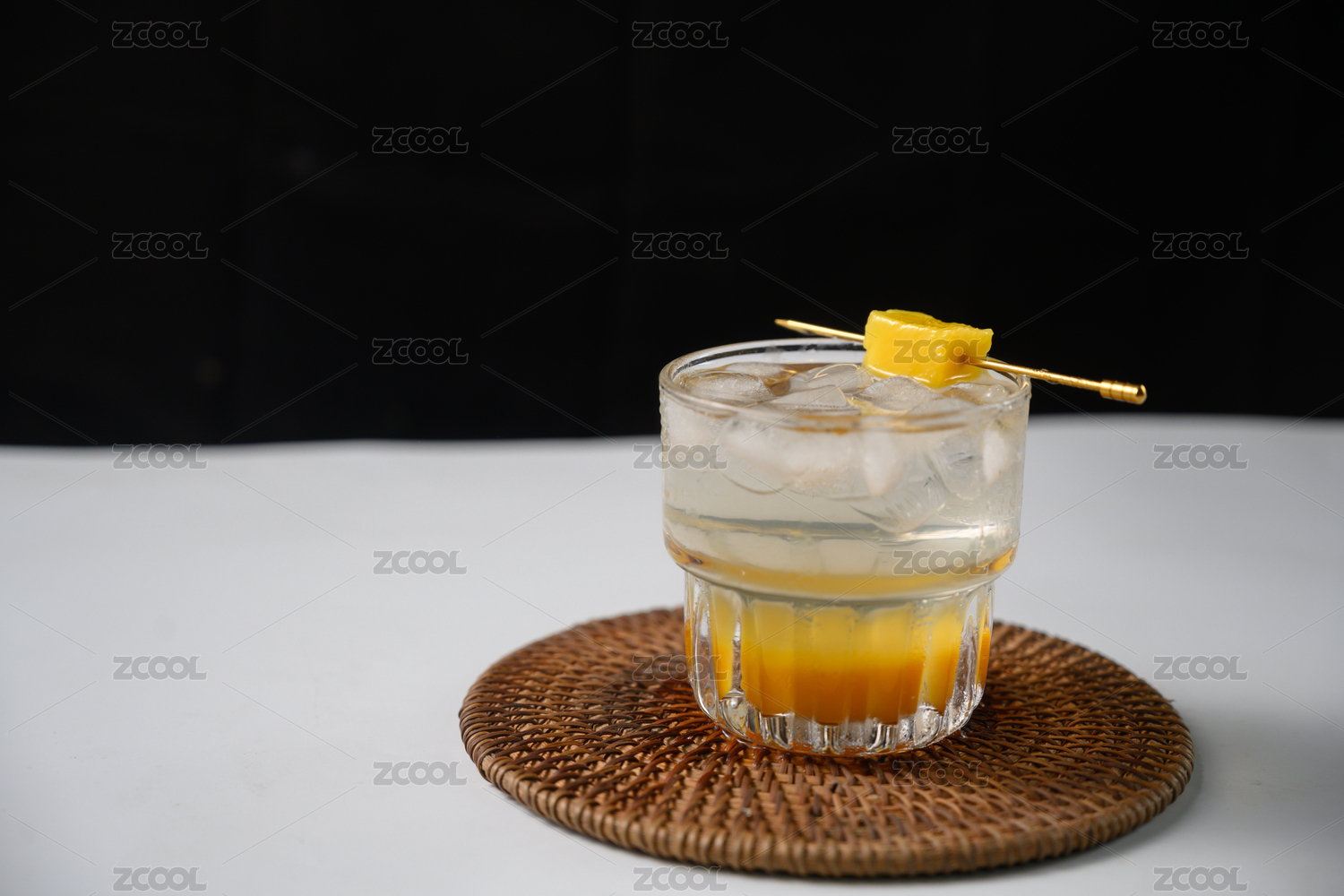 桌面上的杯子里的甘甜可口的冰咖啡果皮茶