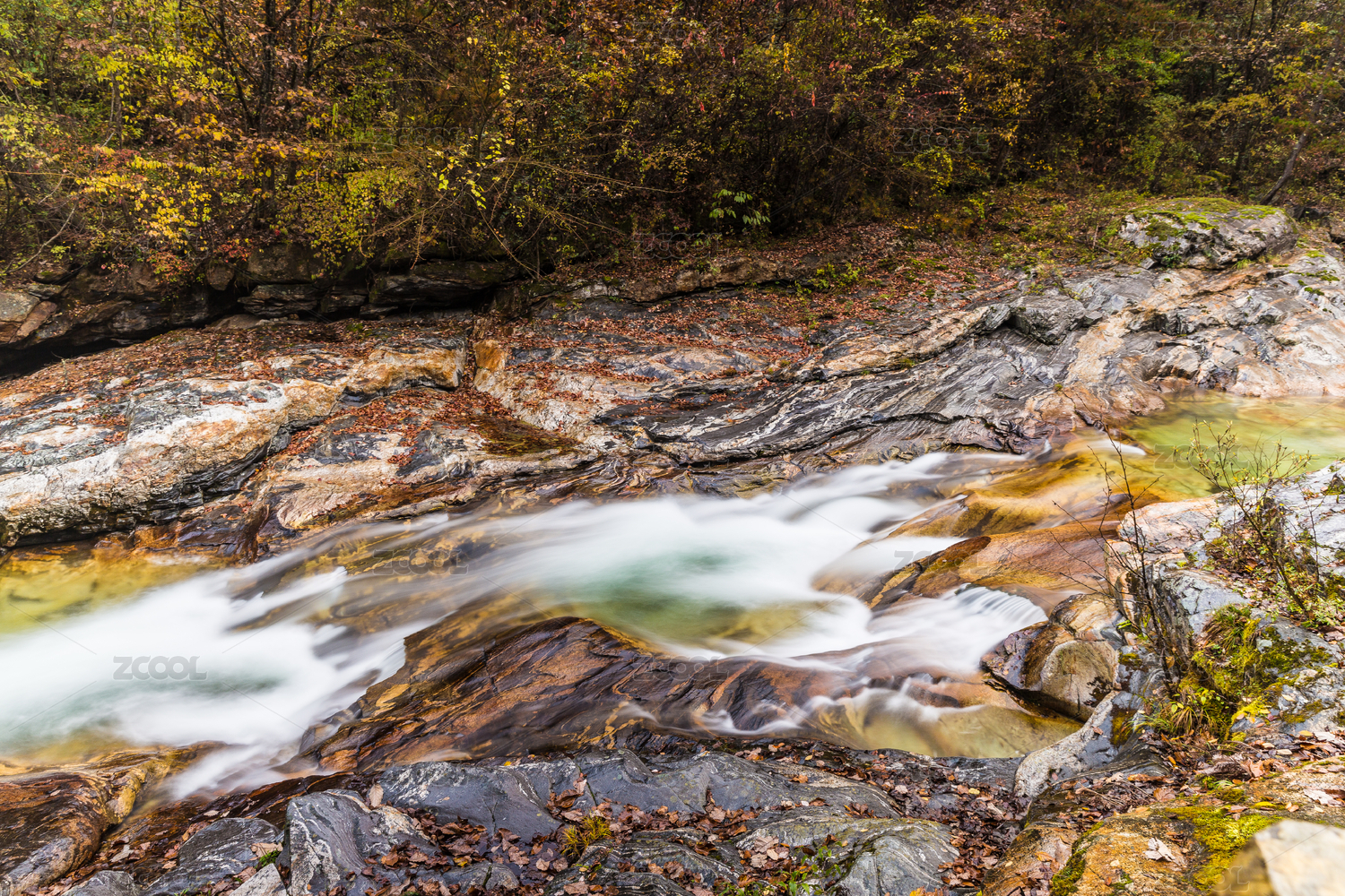 金秋十月的吉林蛟河红叶谷溪流景观