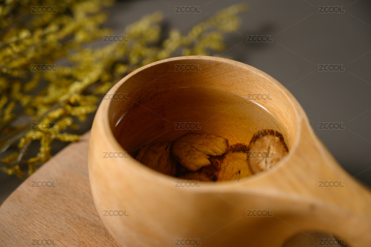桌面上的杯子里的甘甜可口的胰岛果茶