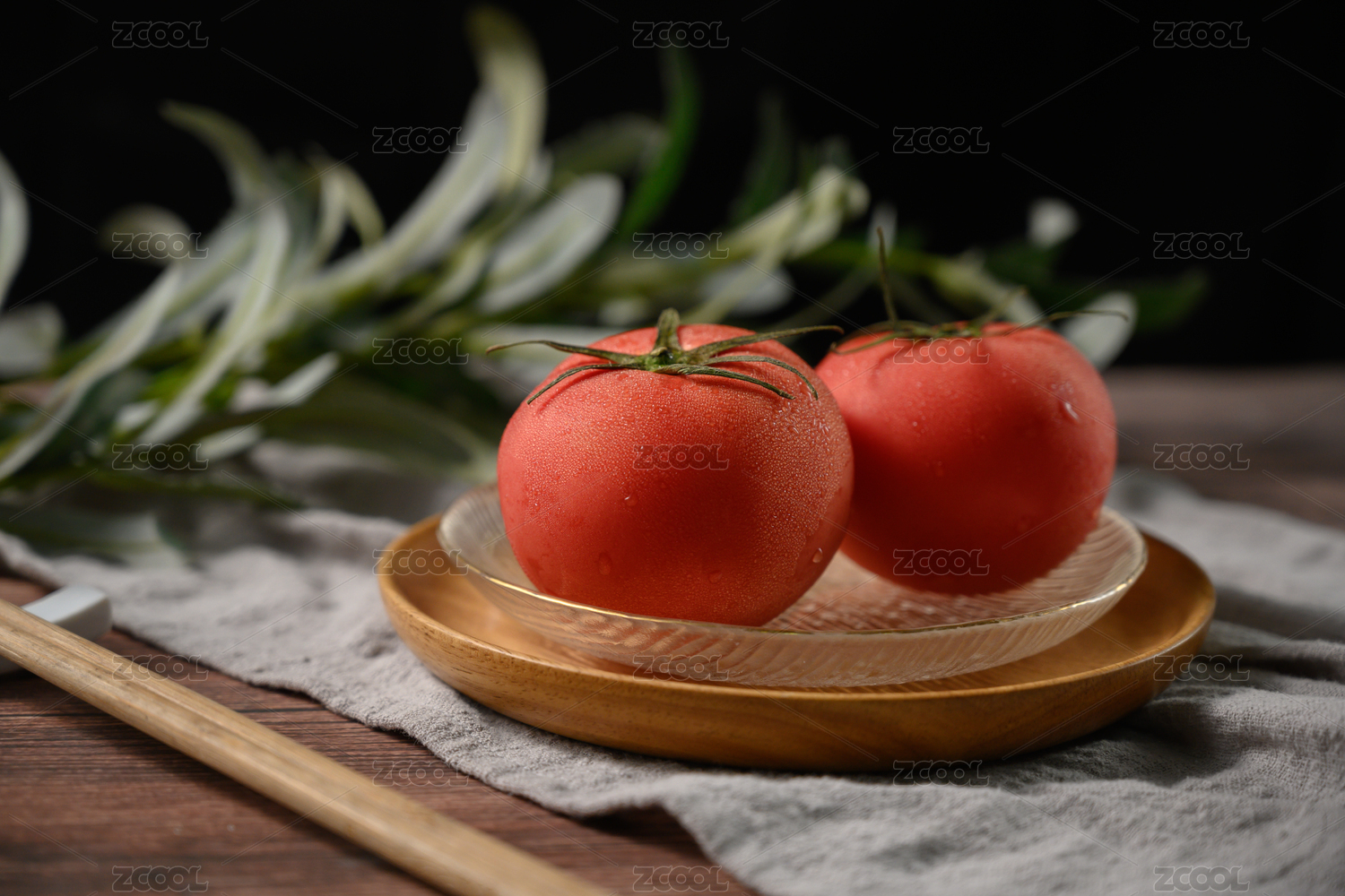 桌面上的盘子里的美味可口的新鲜西红柿