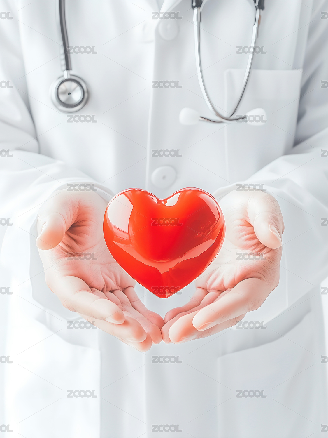 医生手捧红色心跳图形