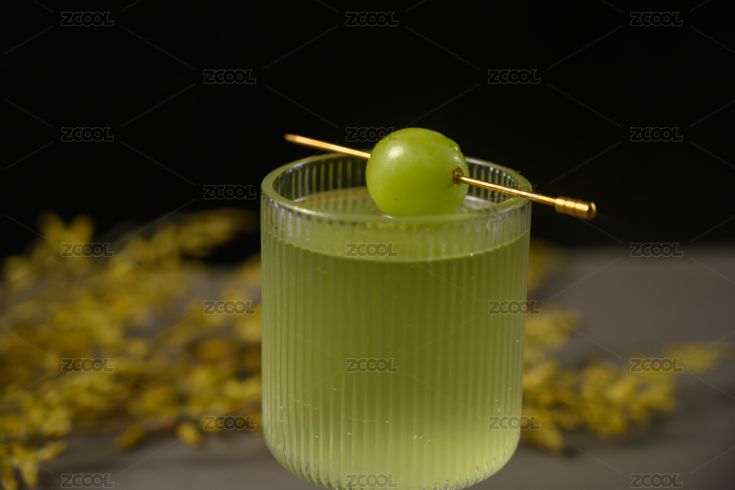 桌面上的杯子里的美味可口的青葡萄汁