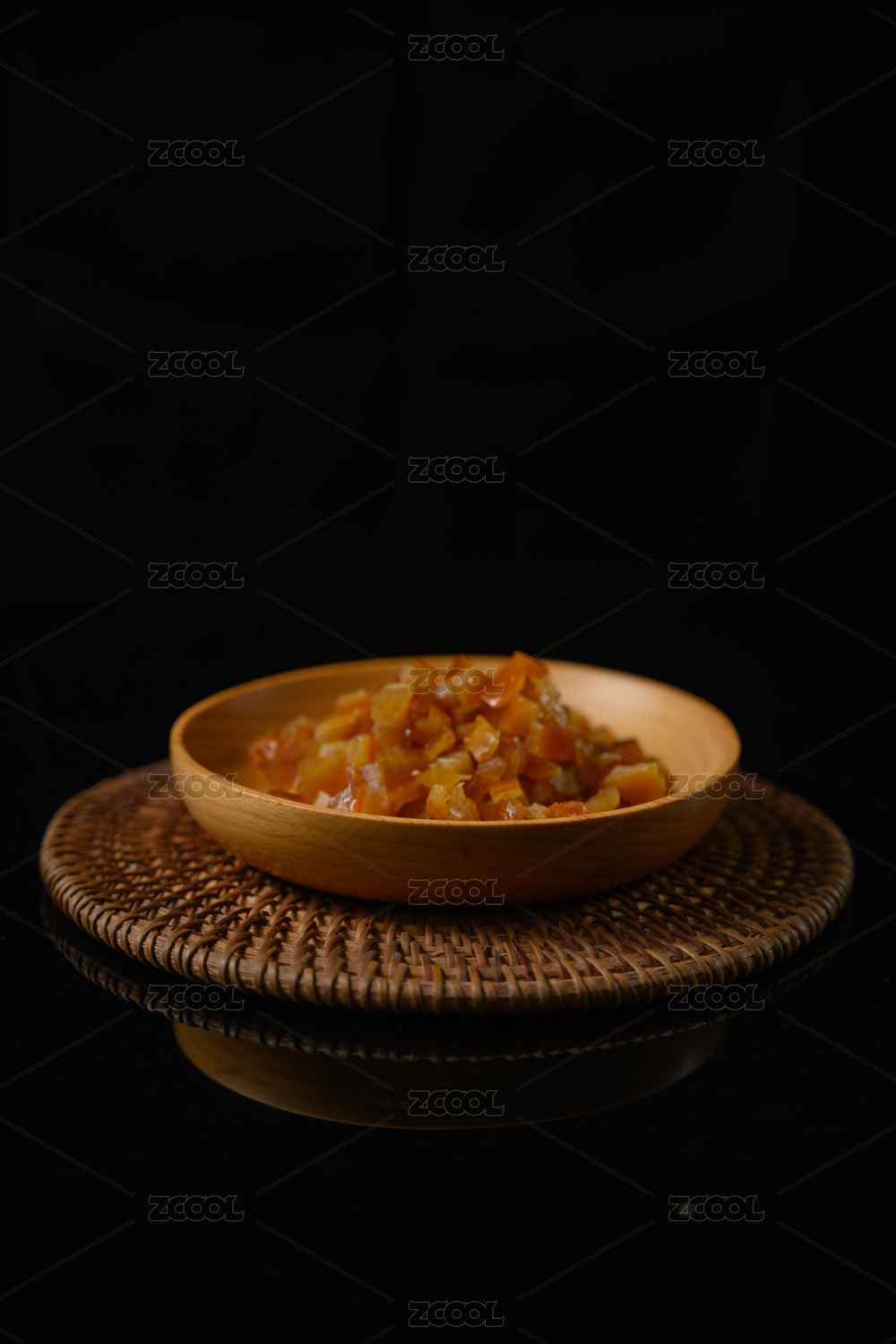 桌面上的盘子里的美味可口的糖渍橙皮丁