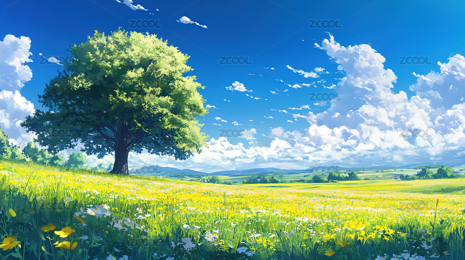 户外,自然,风景,植物,天空,简约,插画,绘画,春天,夏天