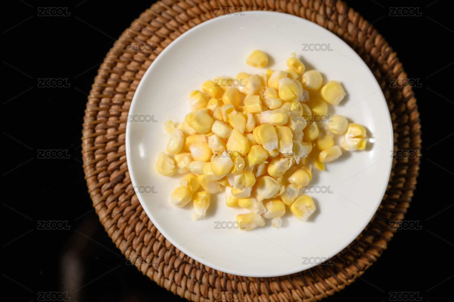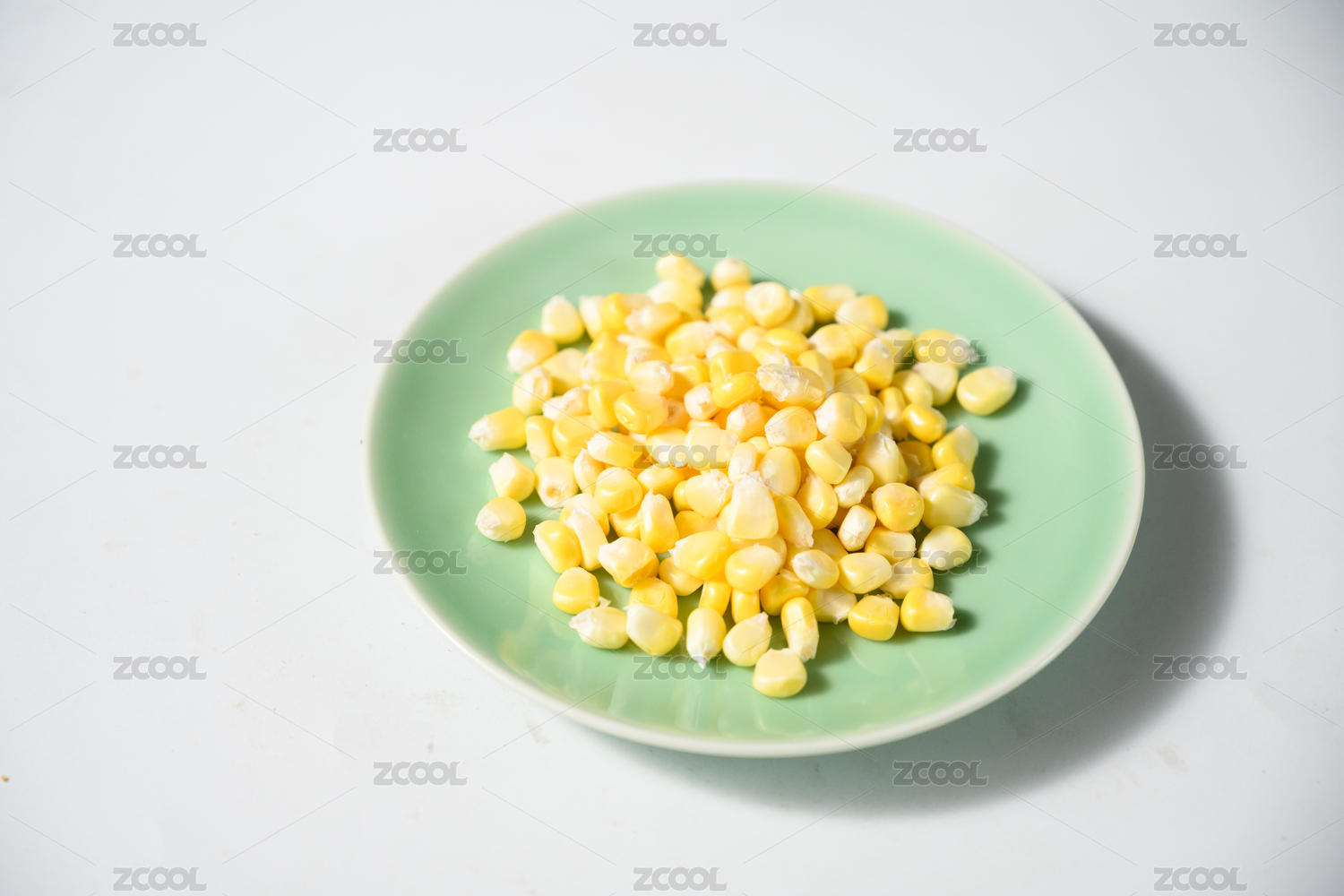 桌面上的盘子里的美味可口的新鲜玉米粒