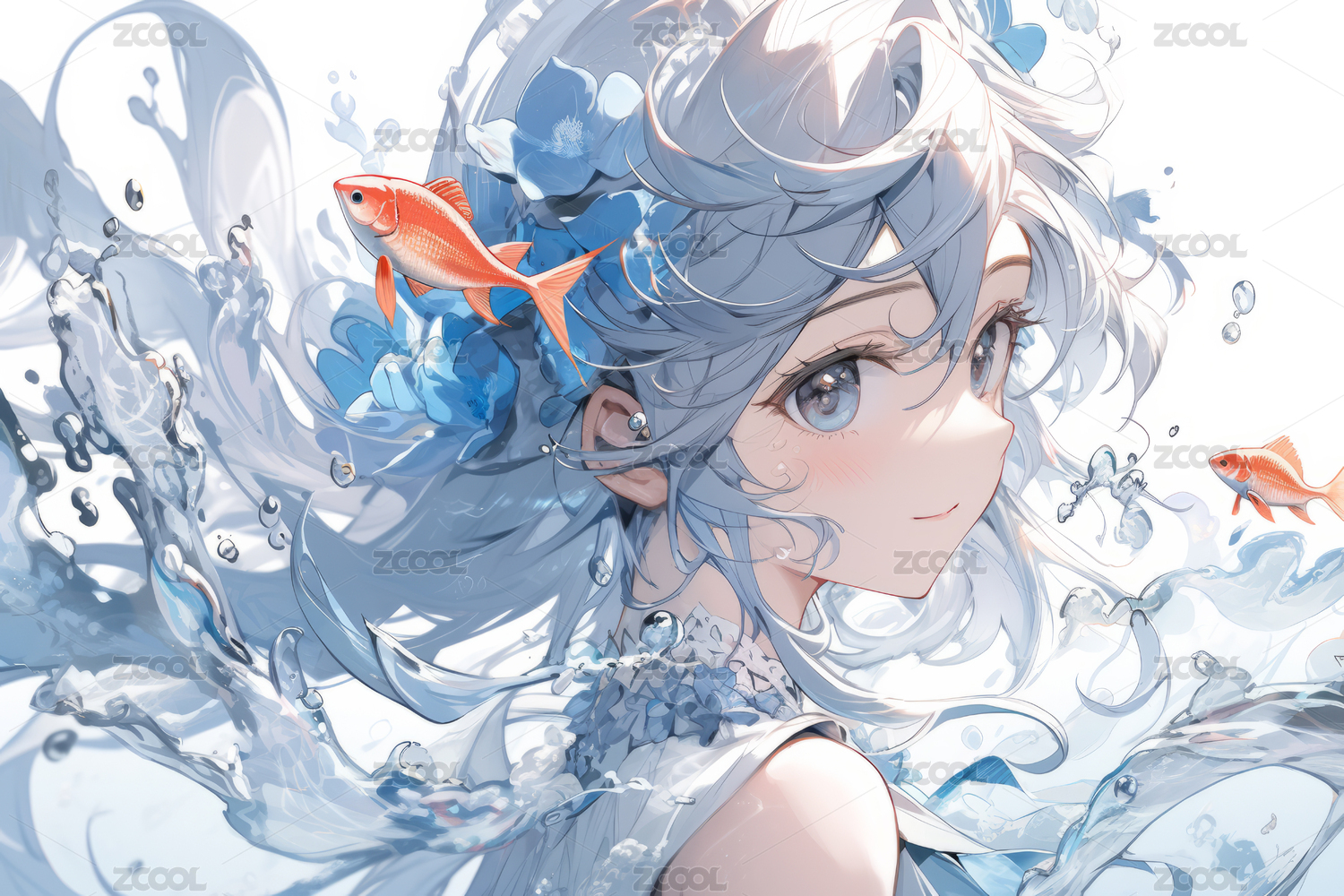 女孩,少女,二次元,梦幻,鱼群,阳光,唯美,海底