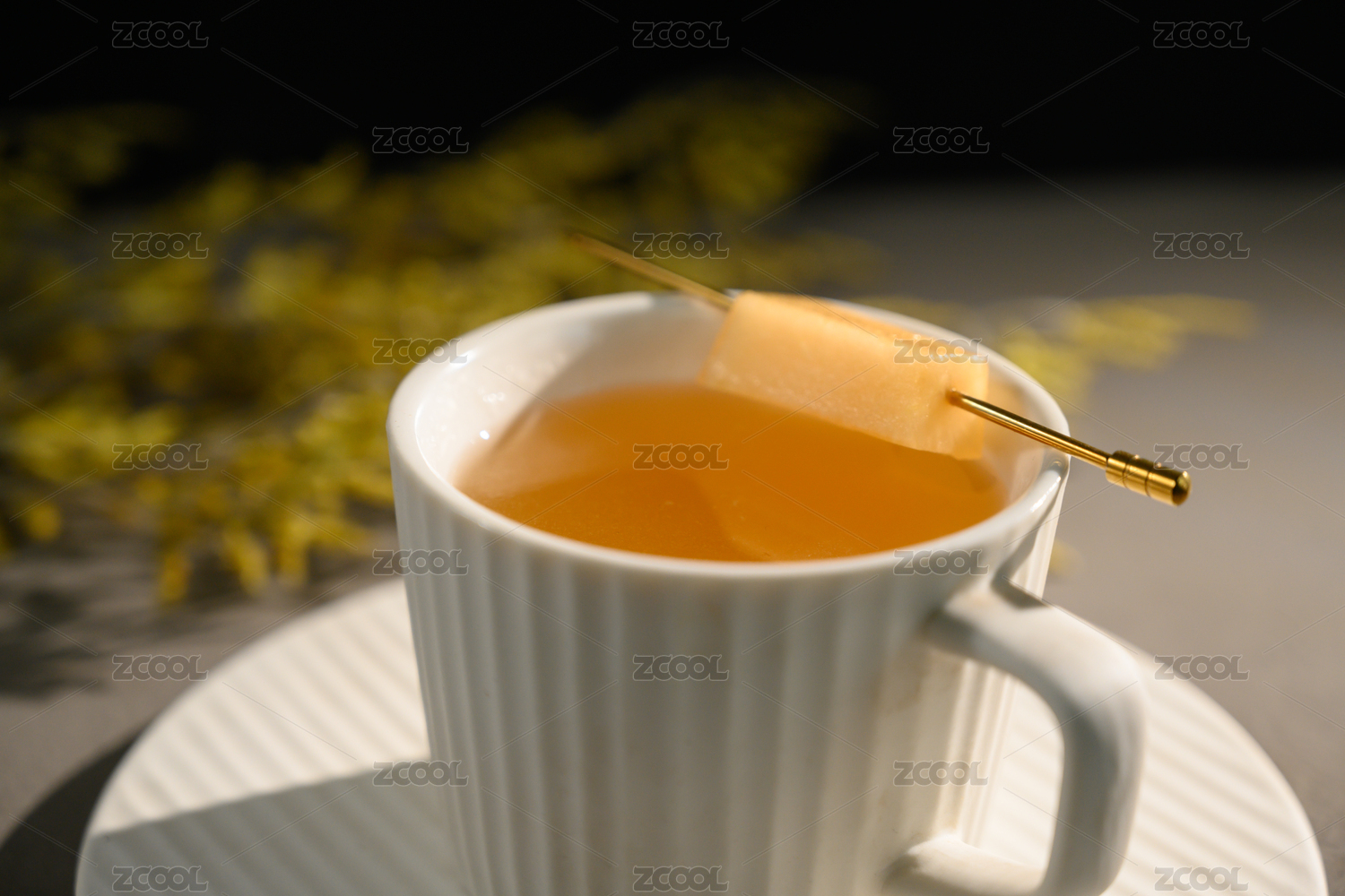 桌面上的杯子里的甘甜可口的槐花茶