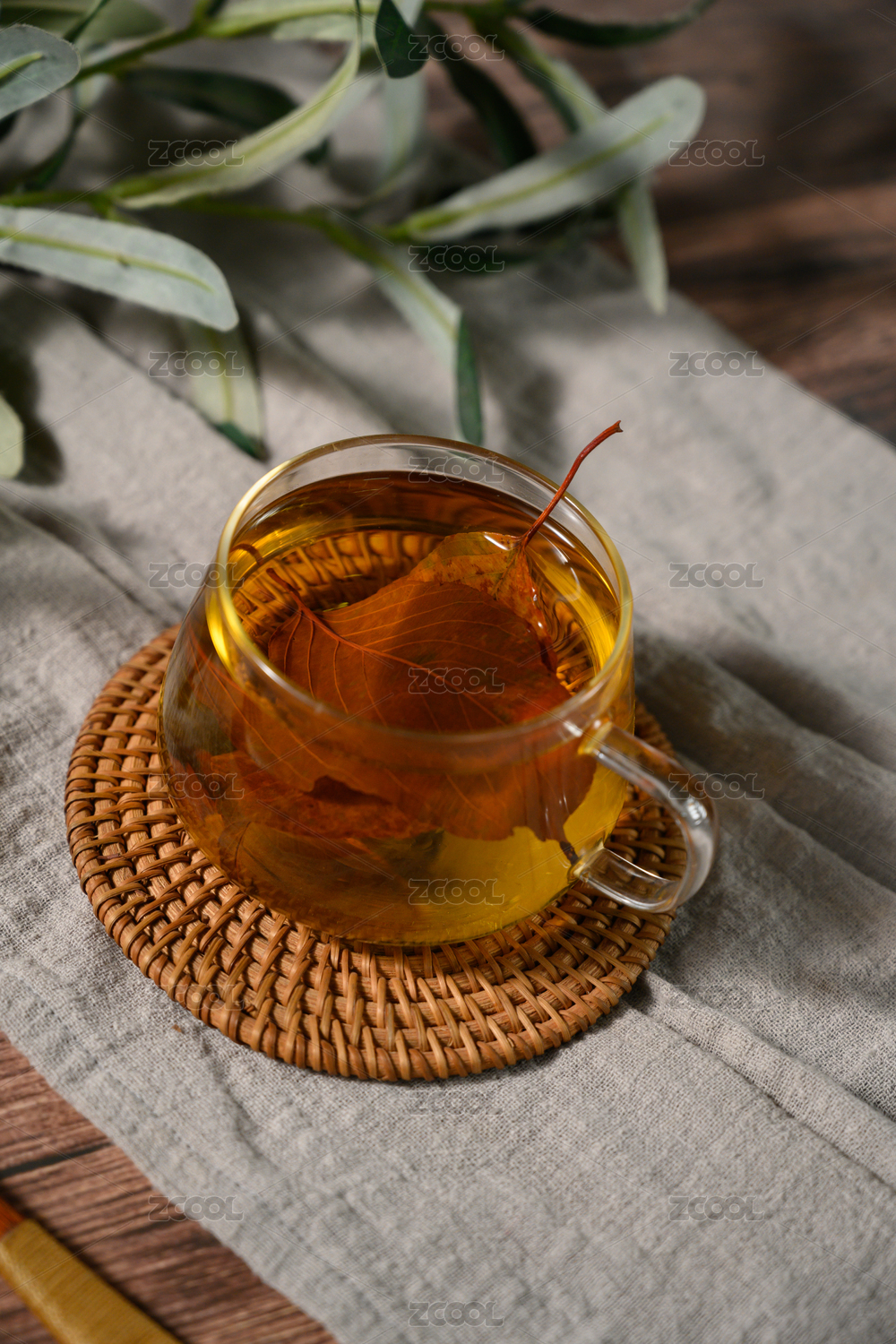 桌面上的杯子里的甘甜可口的秦皮茶