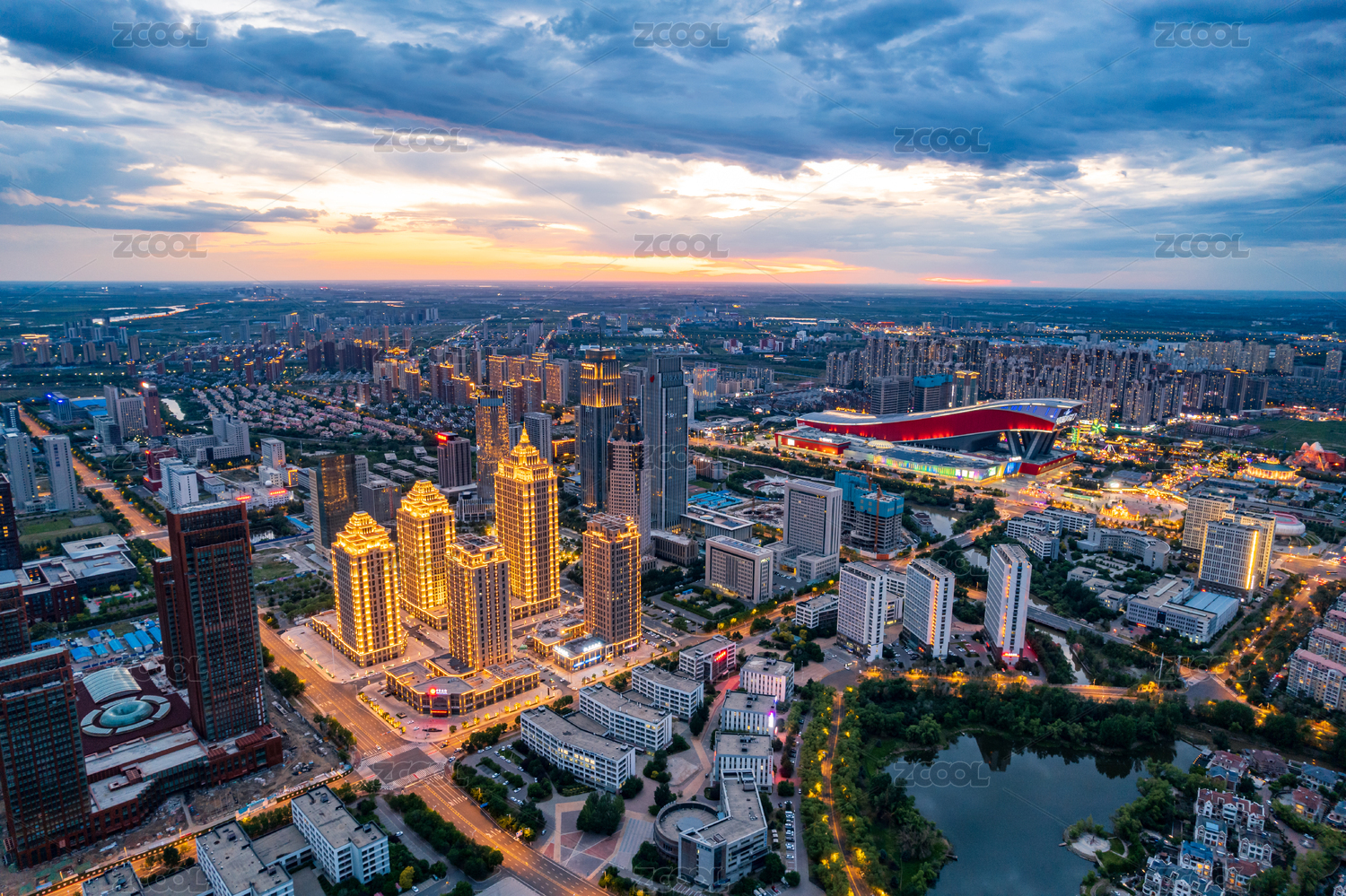 晨曦中的城市鸟瞰