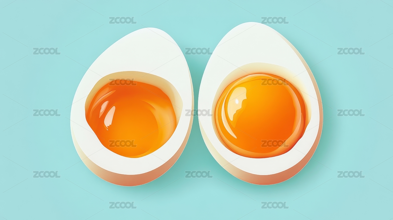 一个鸡蛋的形态,完整的,打开的,煮熟的