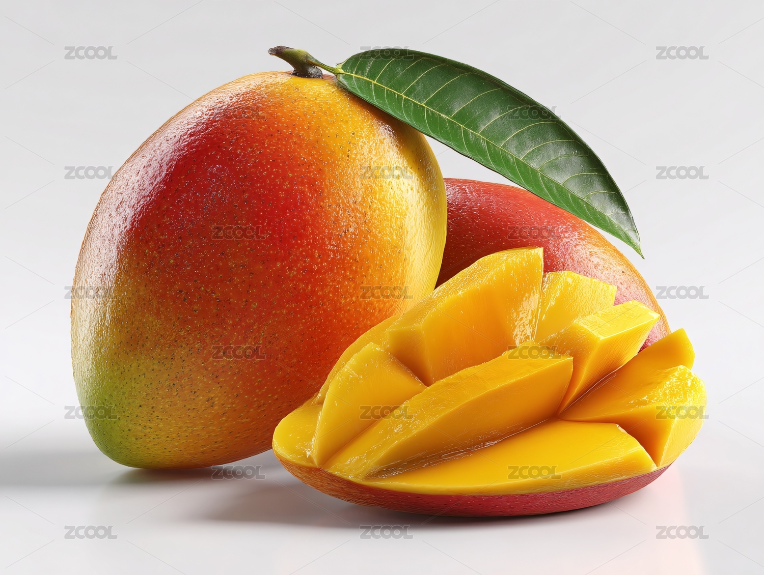 白底上放着一堆贵妃芒和贵妃芒果肉