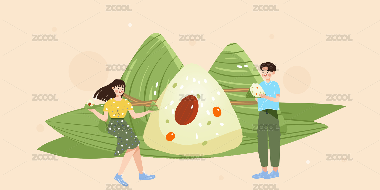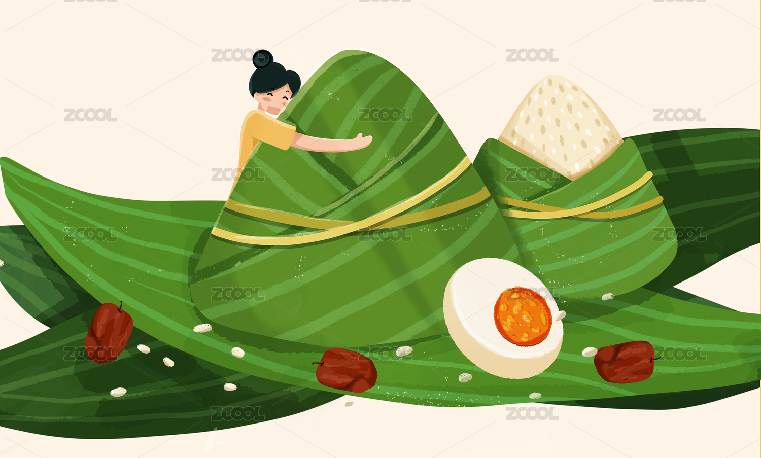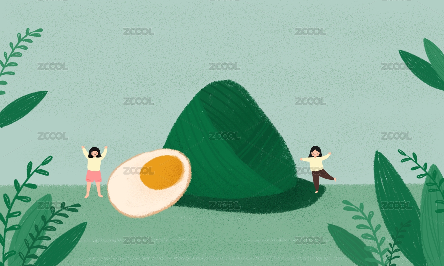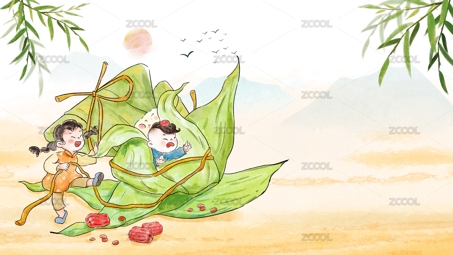 端午节,粽子,小朋友,玩耍,开心,矢量,清新,小人儿,豆馅,HECDBF2020