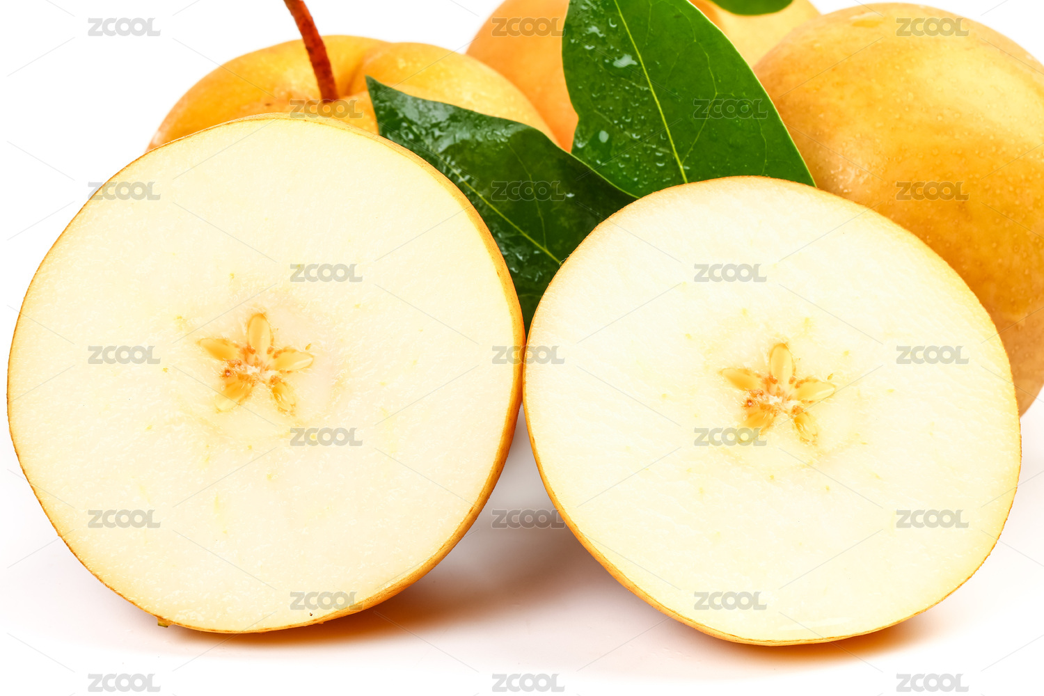 白底上放着切开的丰水梨