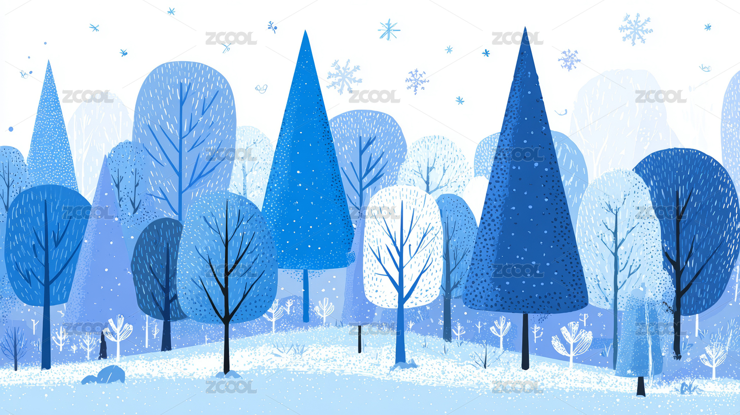 立冬节气冬天森林大雪户外旅行节日场景插画