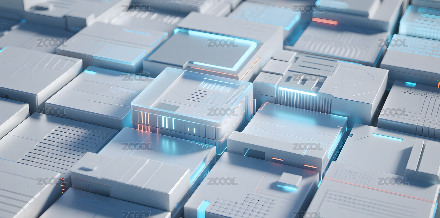 白色方块几何体科技感背景3D渲染