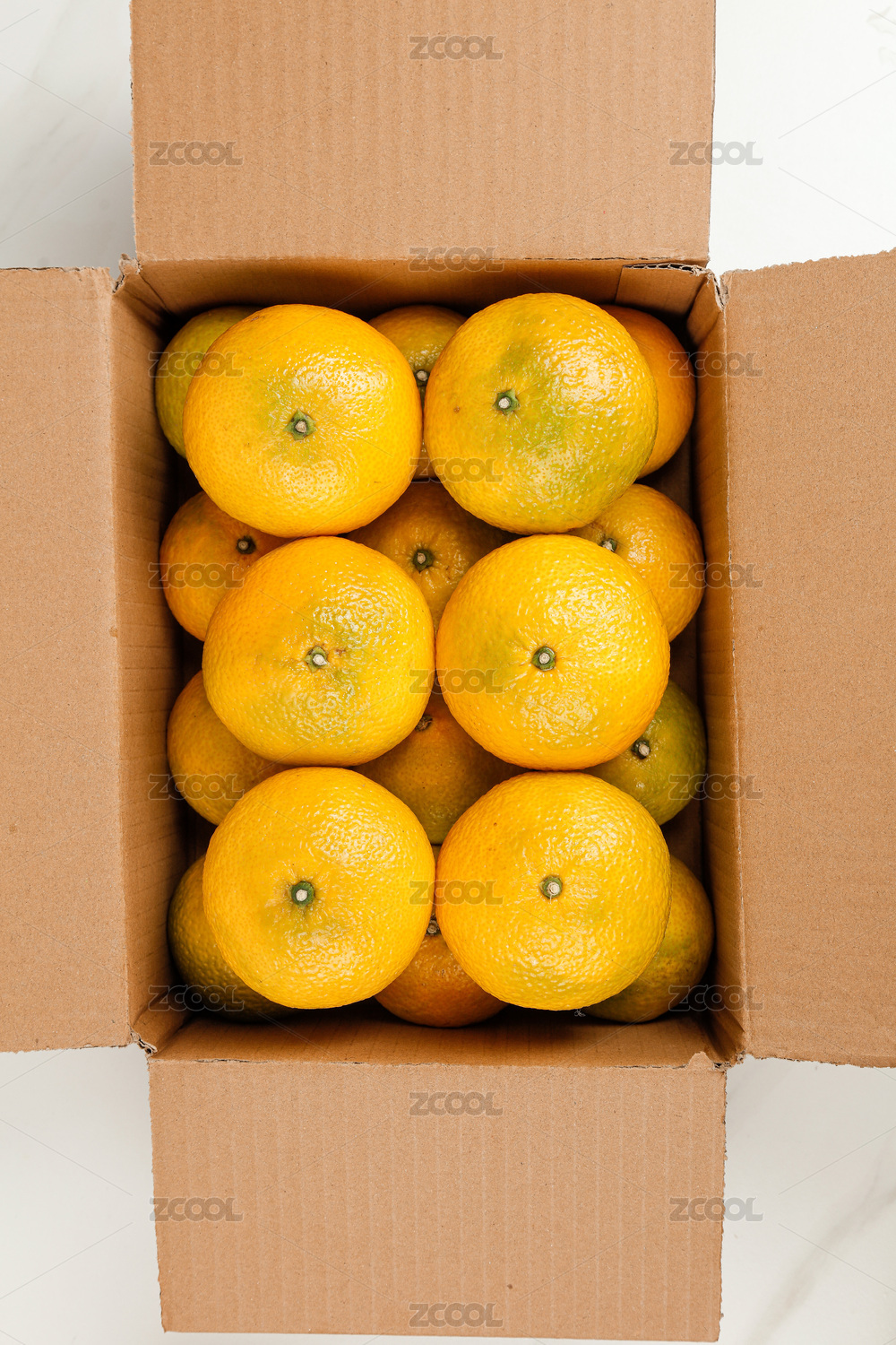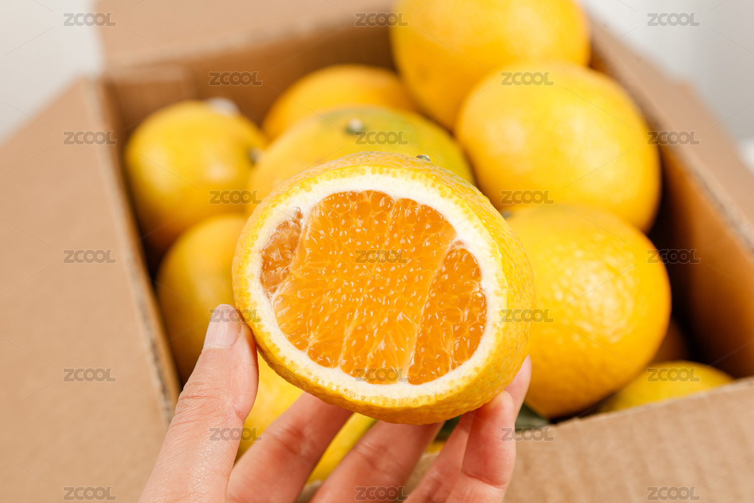 快递纸箱里的新鲜水果赣南脐橙果肉特写