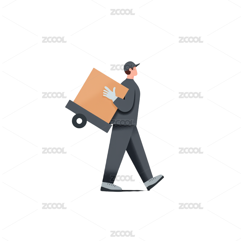 蓝衣服快递员推着拖车送快递3D元素