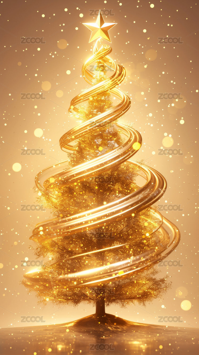绿色和金色丝带交叉螺旋交叠的圣诞树