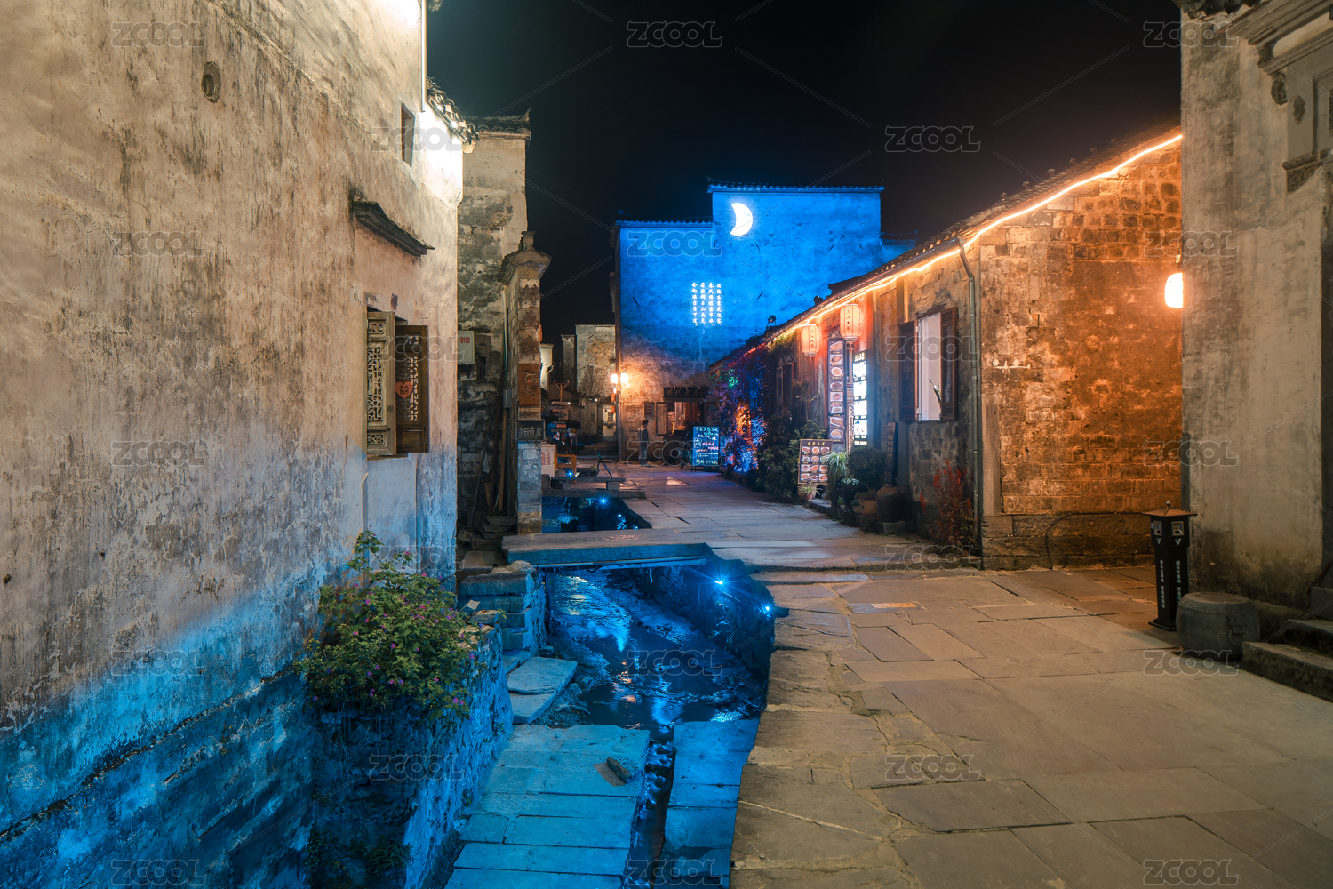 安徽宏村巷子口夜景