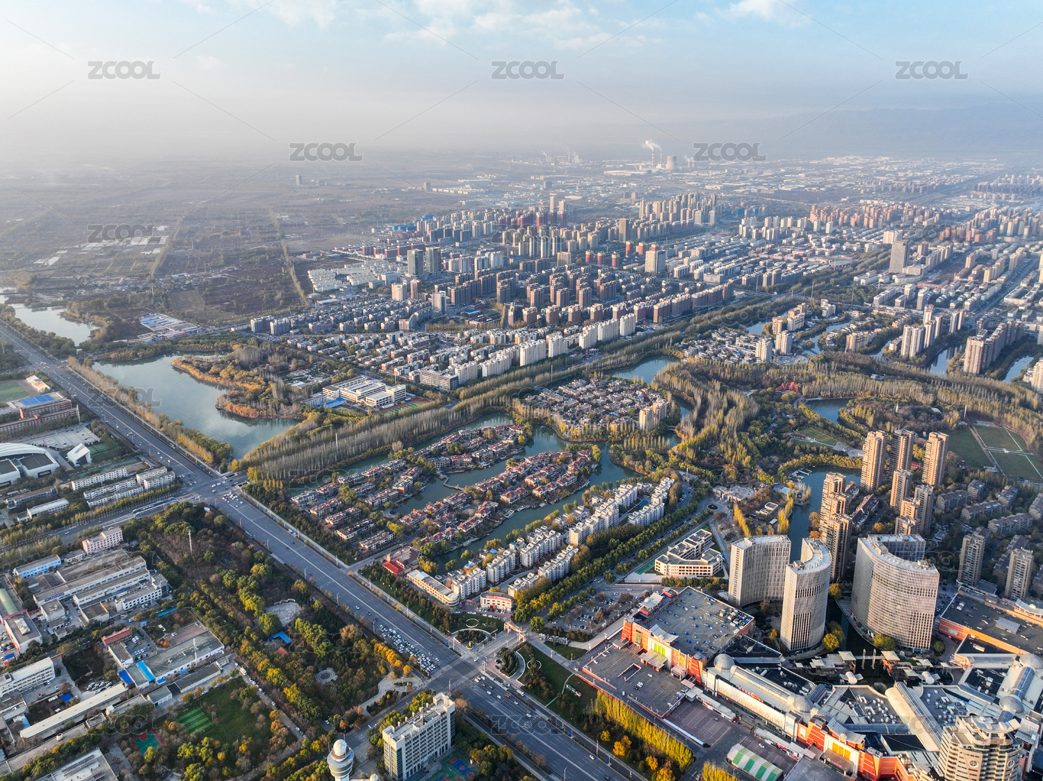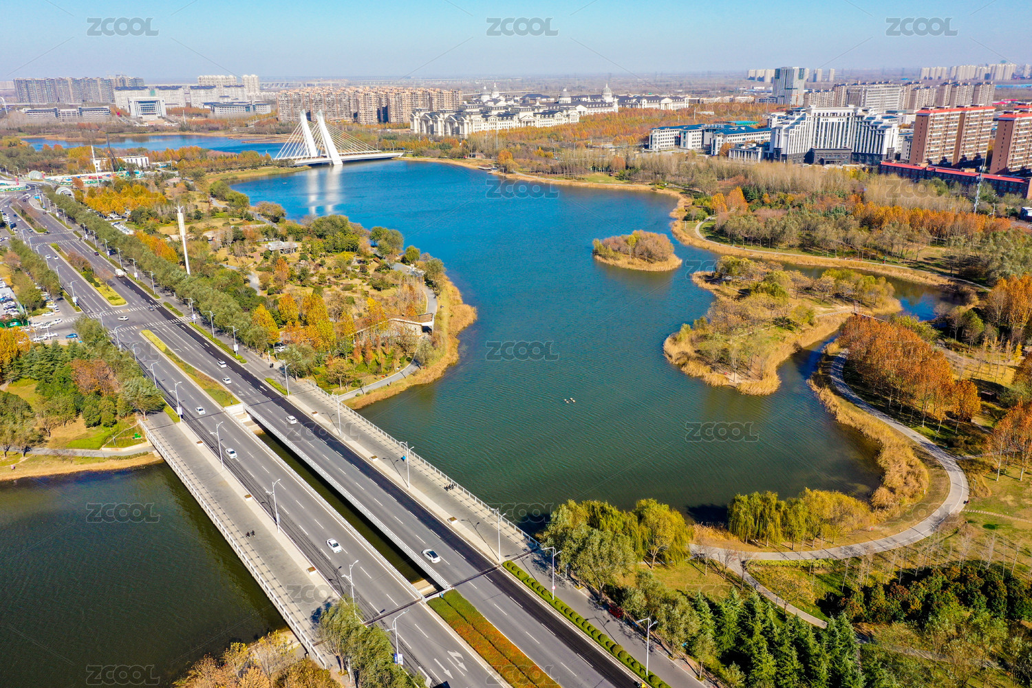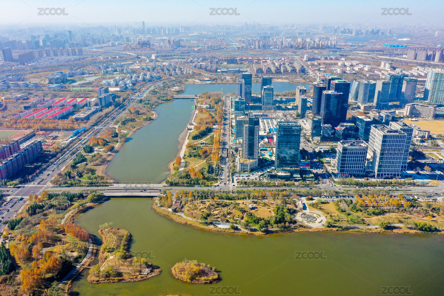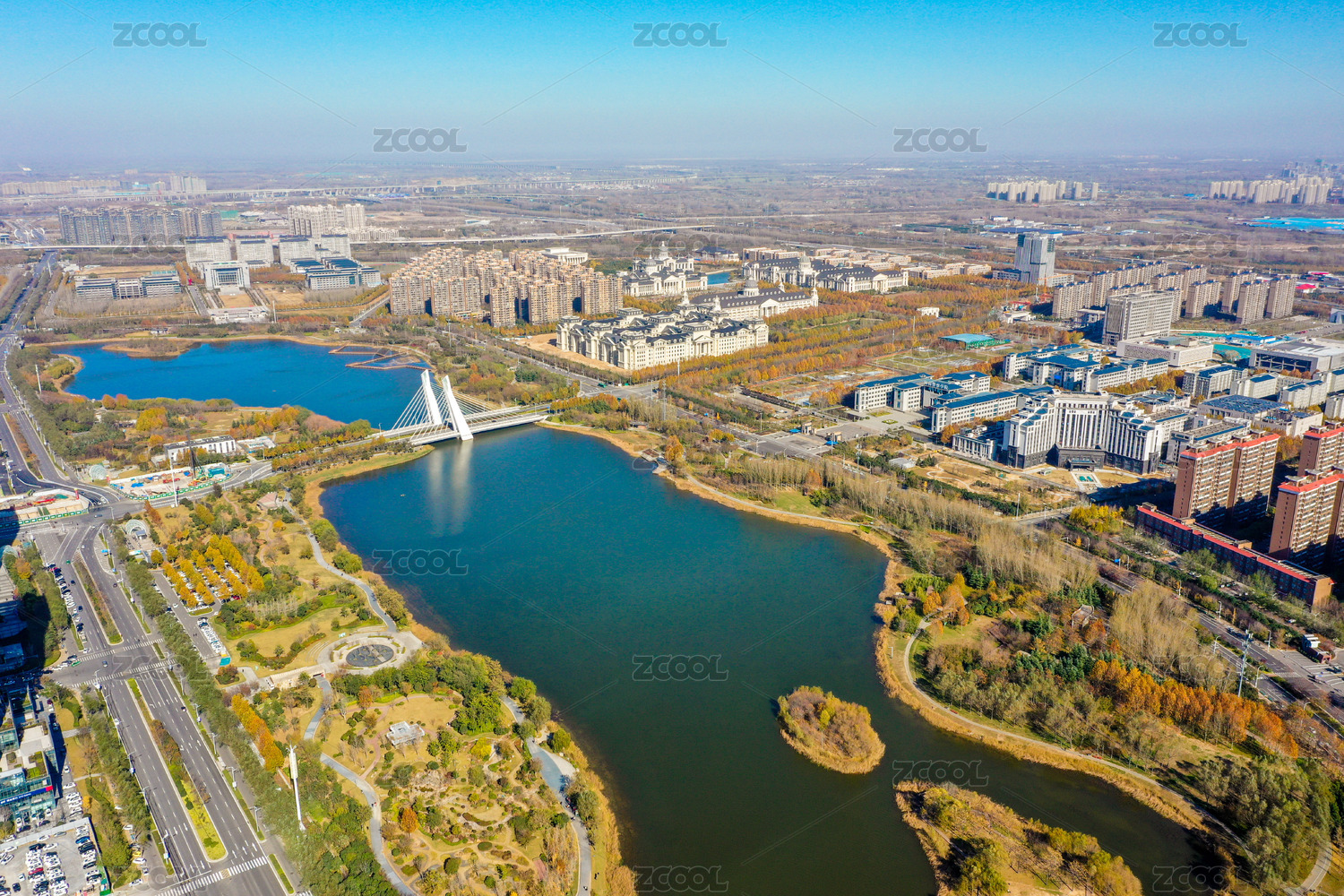 航拍中国河南郑州中原龙子湖智慧岛风光