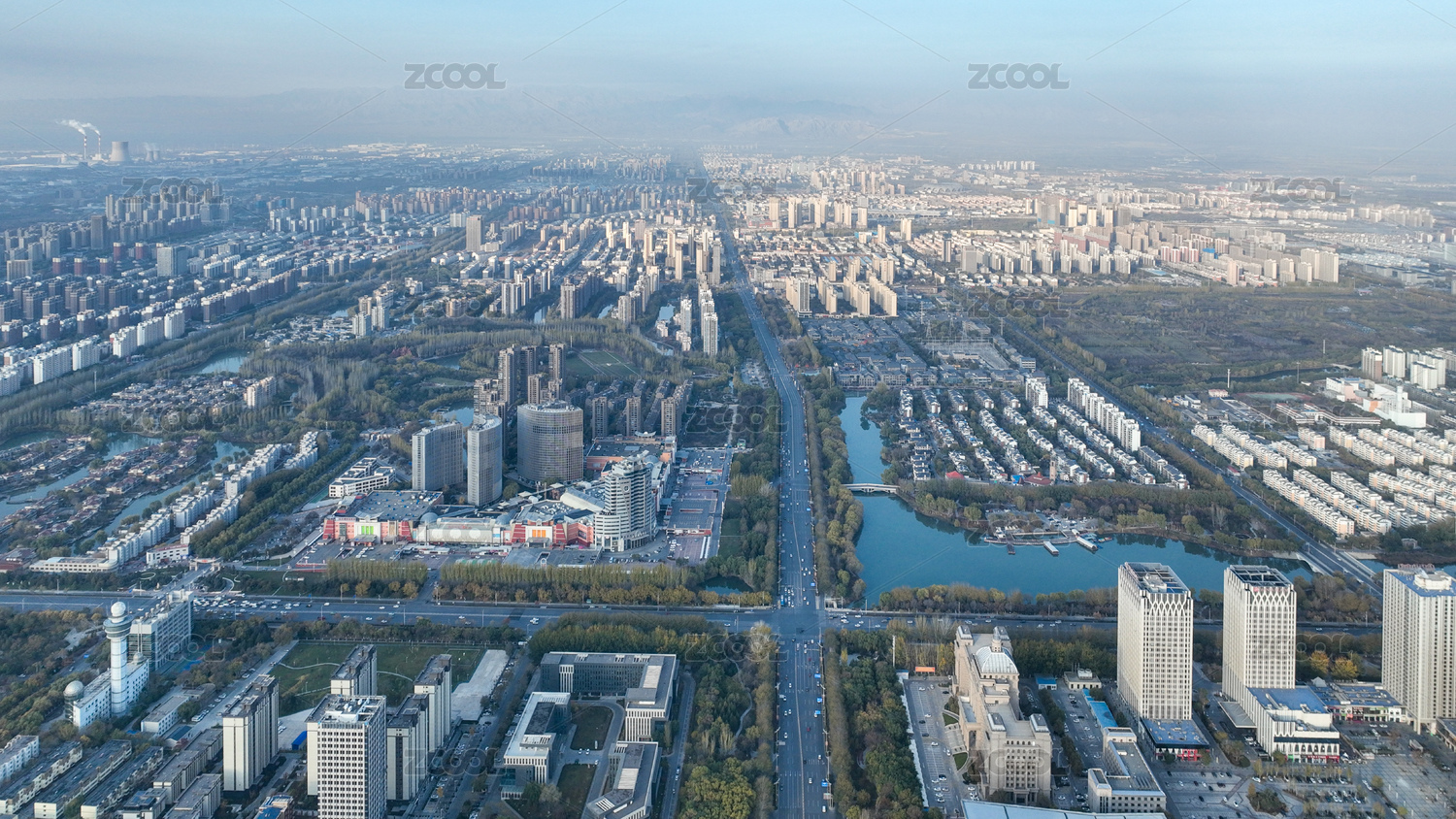 都市风光,发展,市区,航拍视角,摩天大楼,路,交通,高视角,现代,城市生活