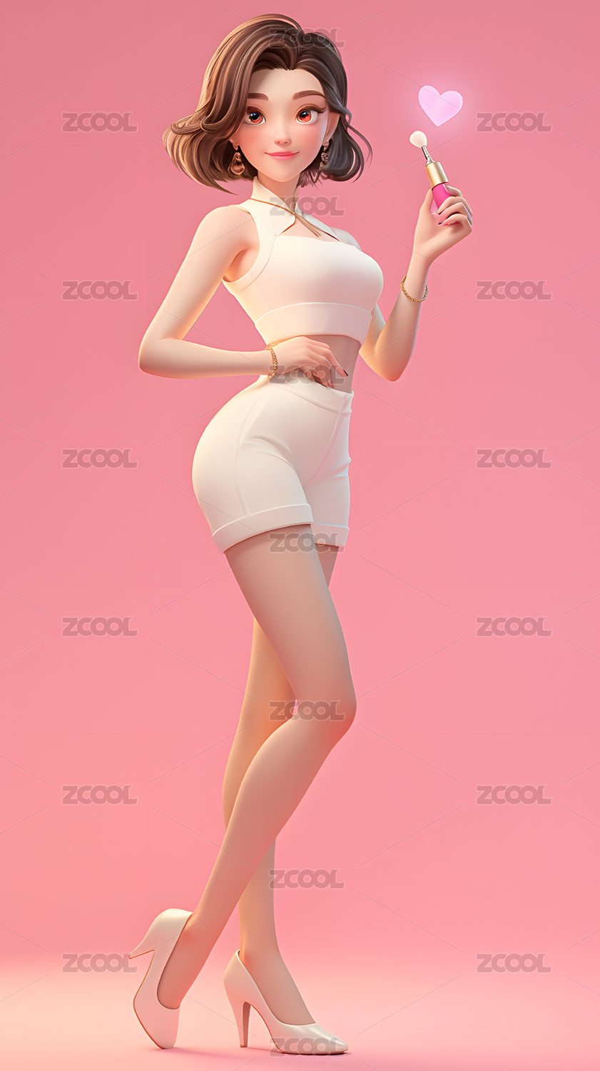 游戏风格卡通人物穿正装连衣裙的微胖女子