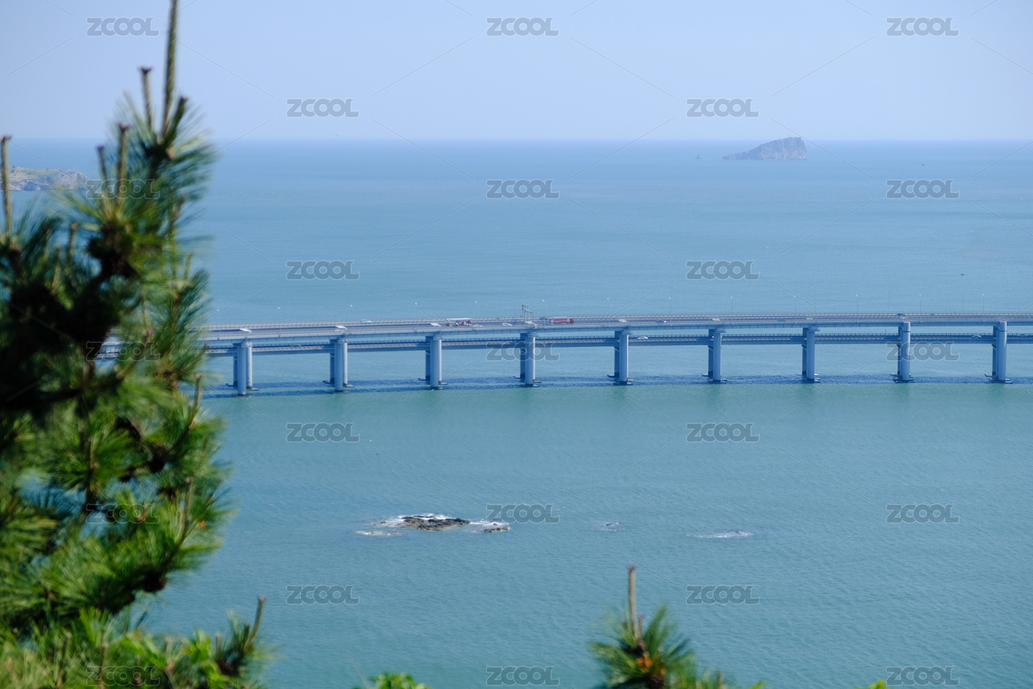 大连西尖山公园山顶远眺星海湾跨海大桥