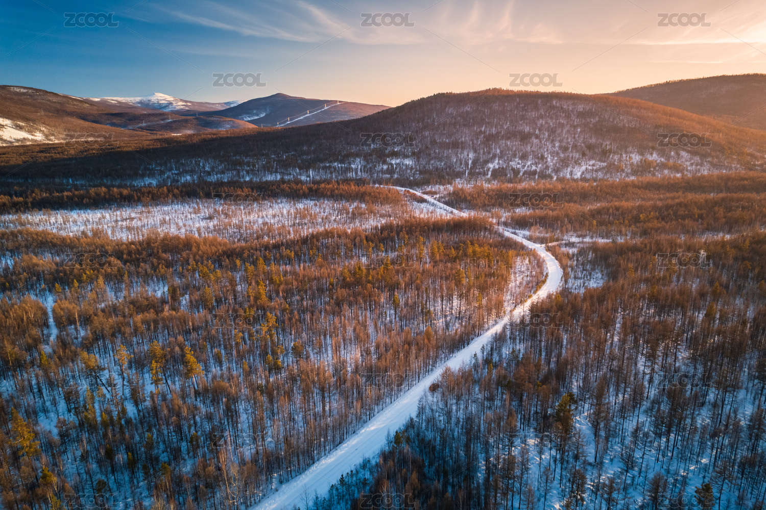 内蒙古呼伦贝尔雪原公路自然风光航拍