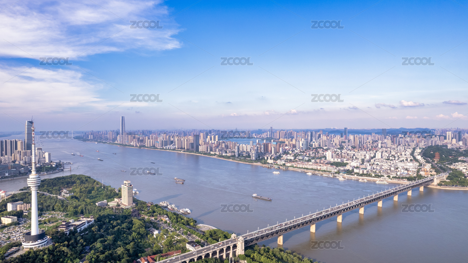 湖北武汉长江两岸城市风光航拍