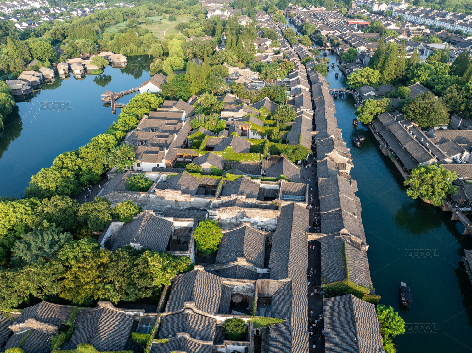 航拍,乌镇,江南古镇,江南水乡,古建筑,老房子,古民居,河流,发射,传统文化