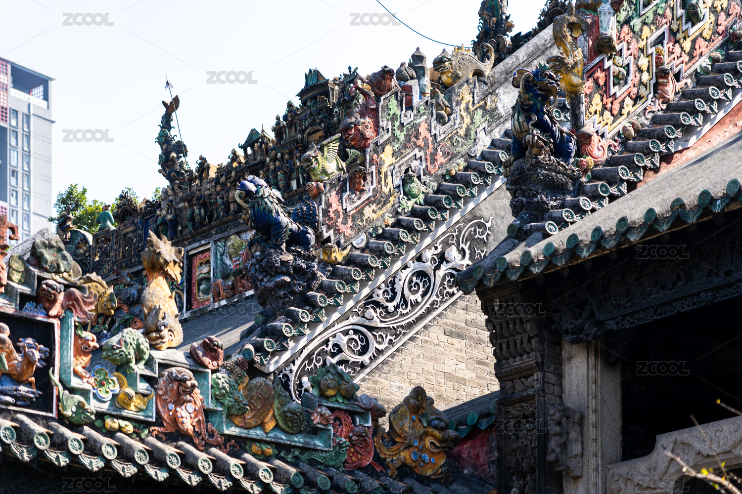 中国广州陈家祠岭南建筑屋顶灰塑陶塑