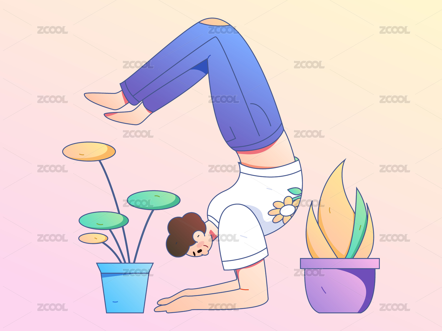 练习瑜伽身心健康扁平矢量人物概念运营手绘