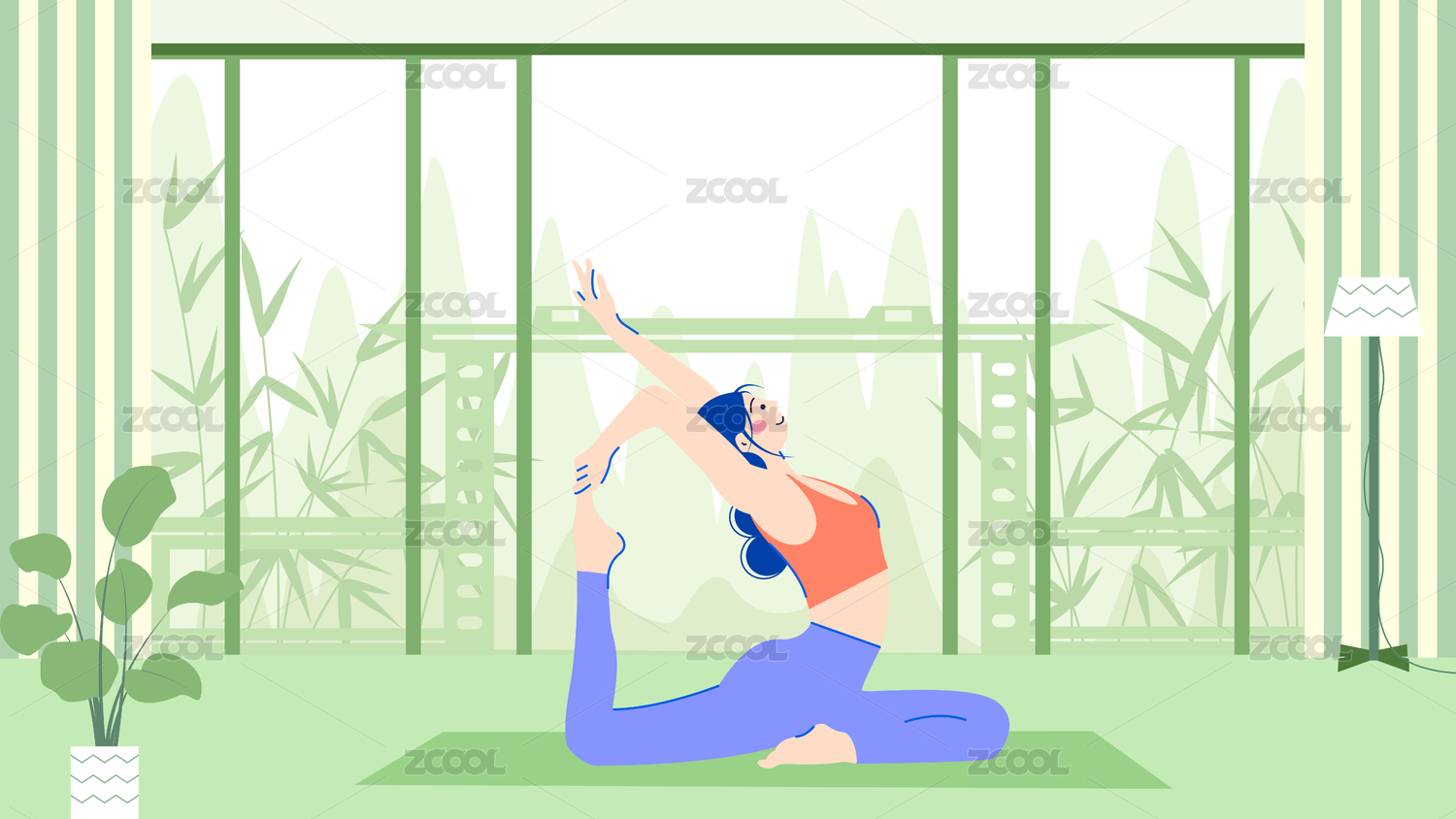 绿色扁平清新中国风背景女性瑜伽健身姿势