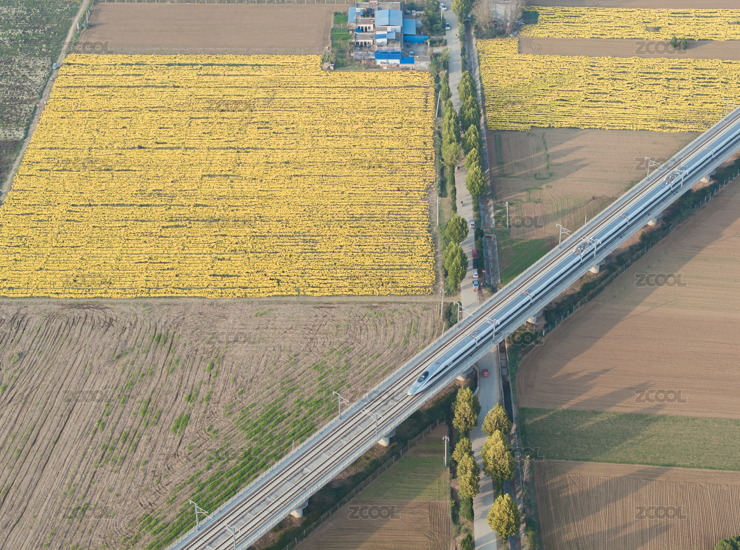 航拍秋日高铁穿越河南方城乡村田野大地景观