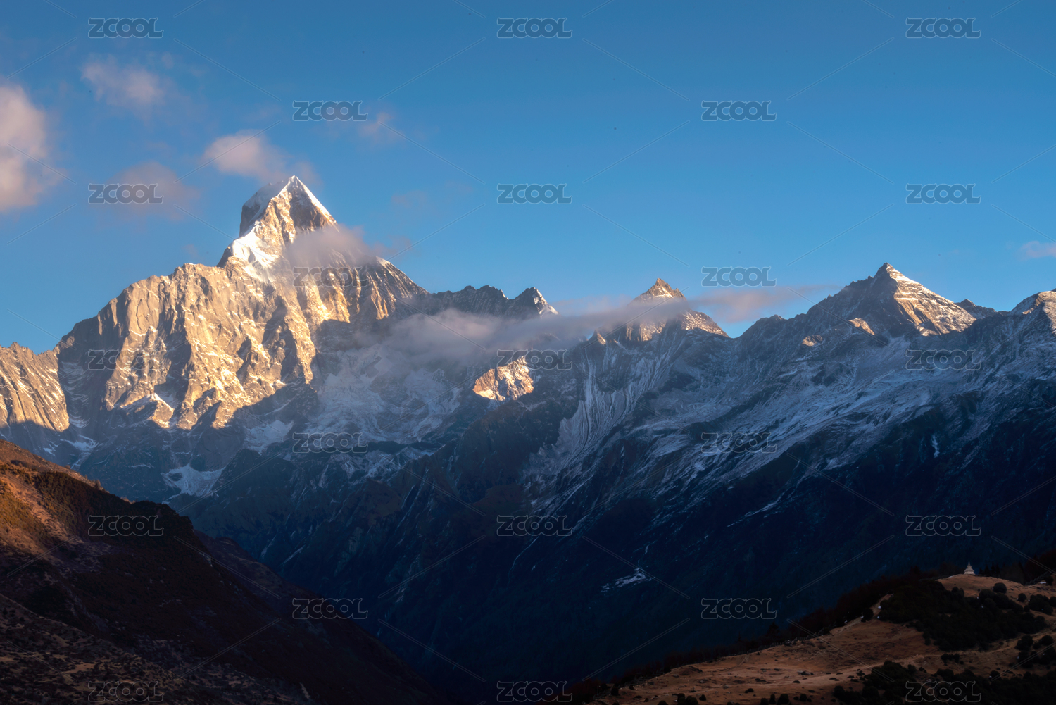夕阳,四姑娘山,幺妹峰,日照金山,金色,傍晚