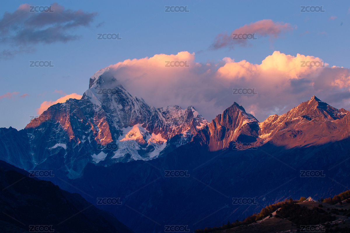 夕阳,四姑娘山,幺妹峰,日照金山,金色,傍晚