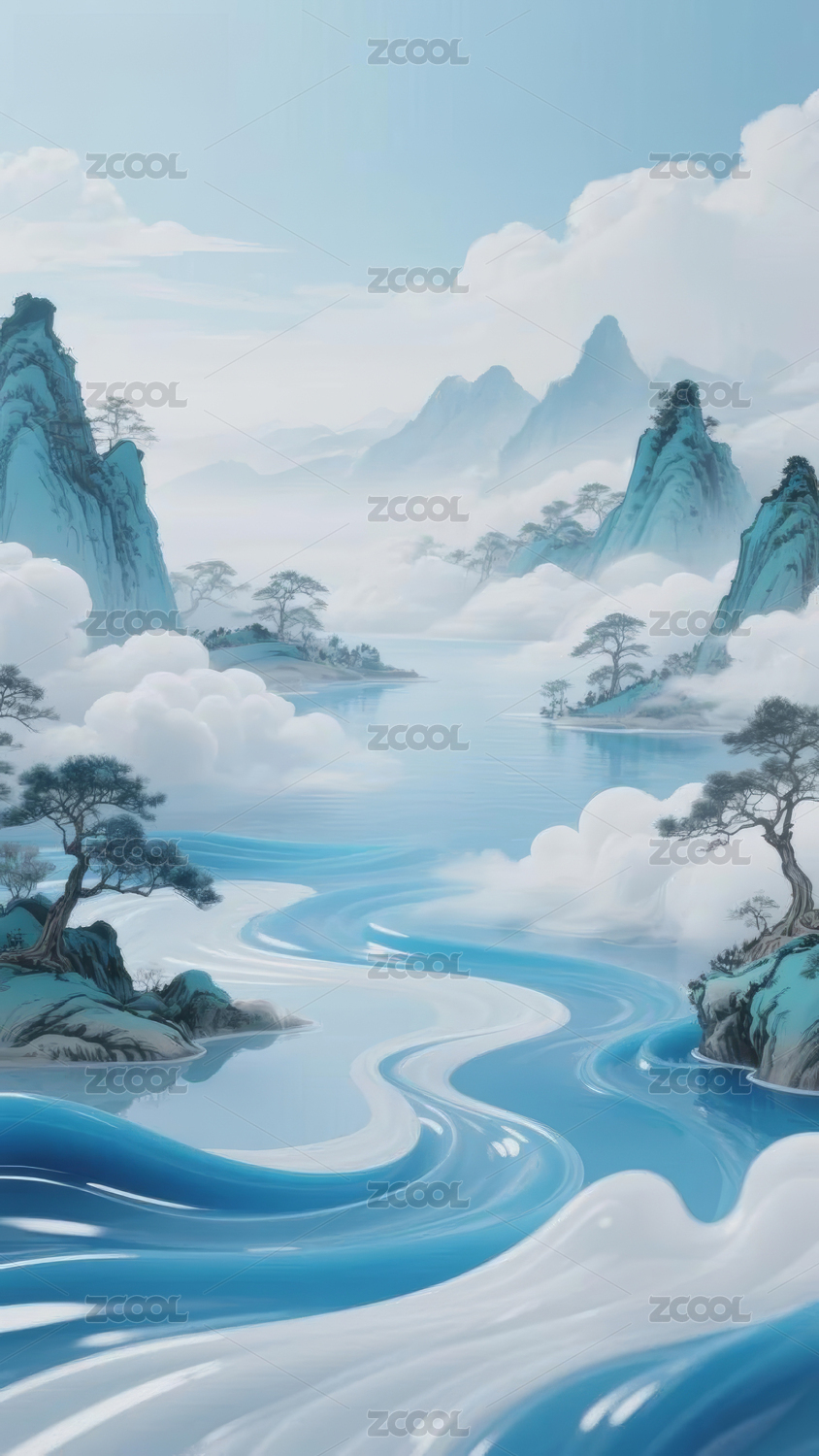 大自然,敦煌,复古,国风,国画,红日,户外,渐变,江山,旅游