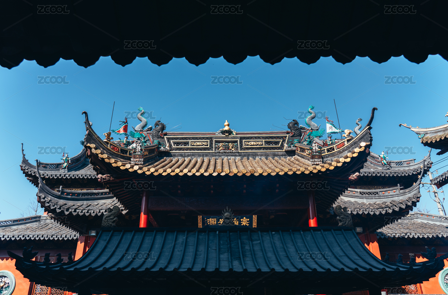 苏州西园寺大雄宝殿-蓝天下的佛殿