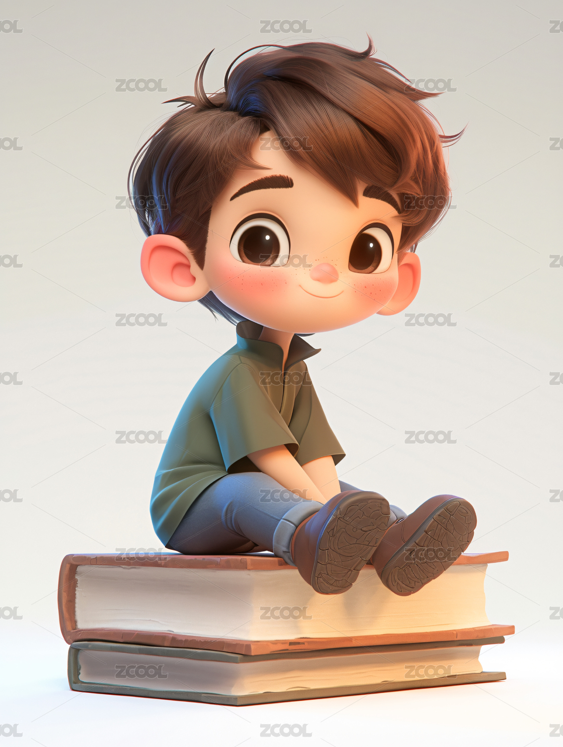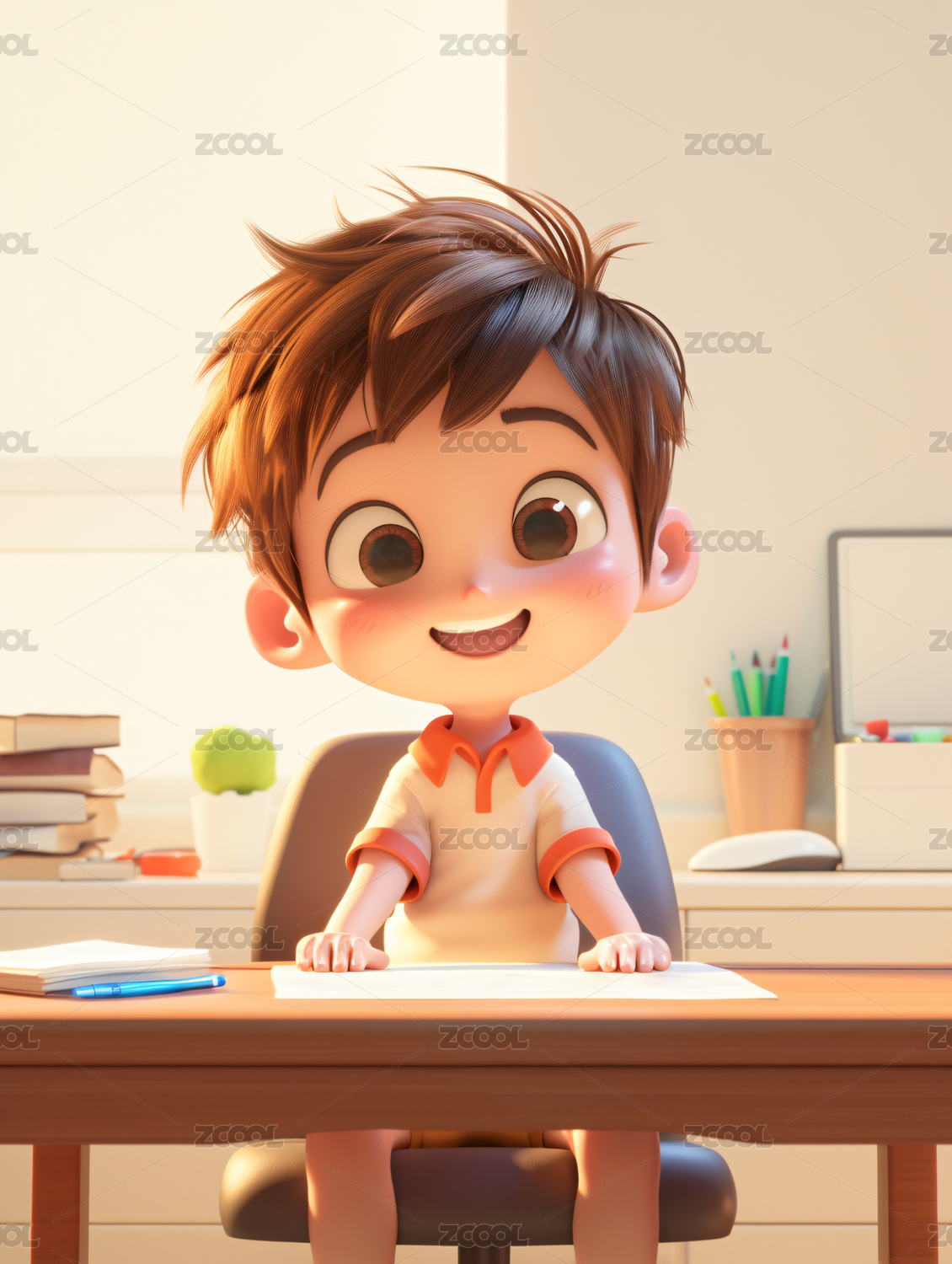 3D,学生,卡通,插画,学习,AIGC202402,男孩,男生,桌子,课桌