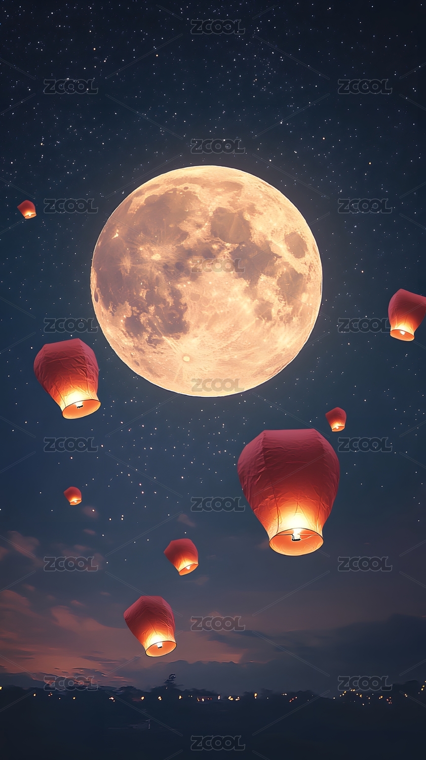 中国传统孔明灯中秋节中元节习俗