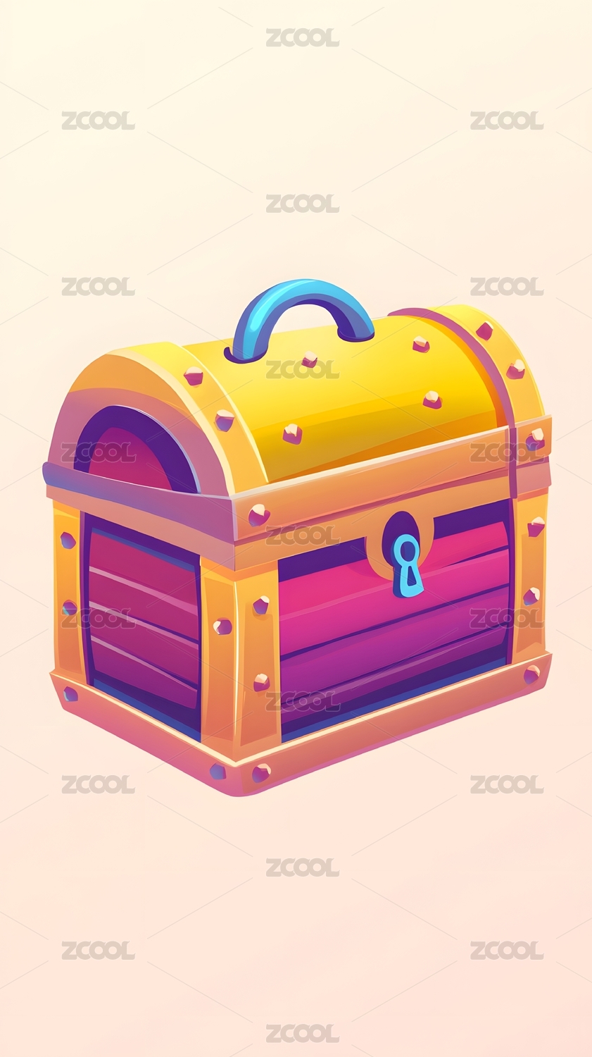 宝箱,游戏,卡通,金色,模型,图标,元素,可爱,3D,渲染