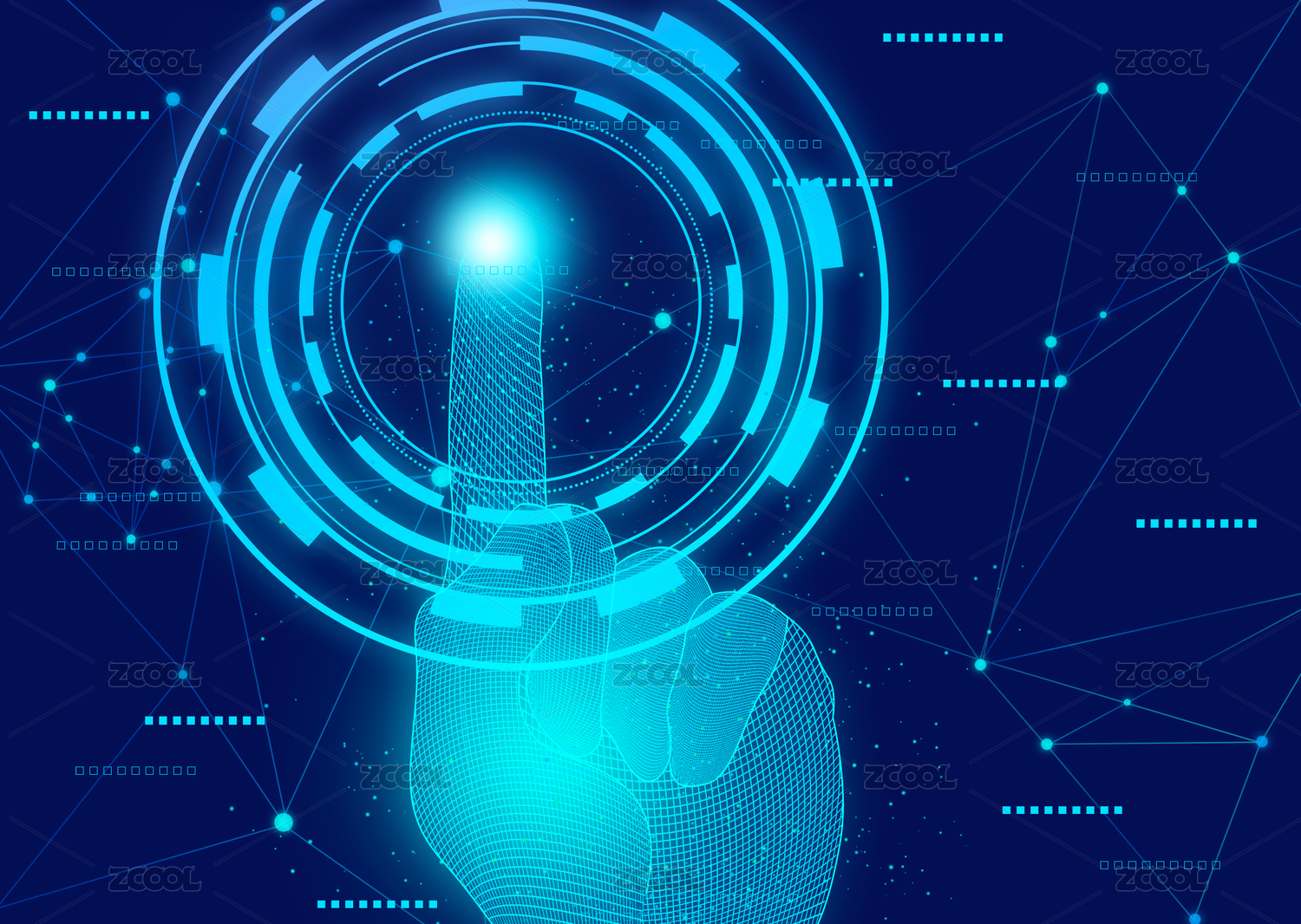 触摸屏幕的手,AI人工智能科技概念创意矢量图