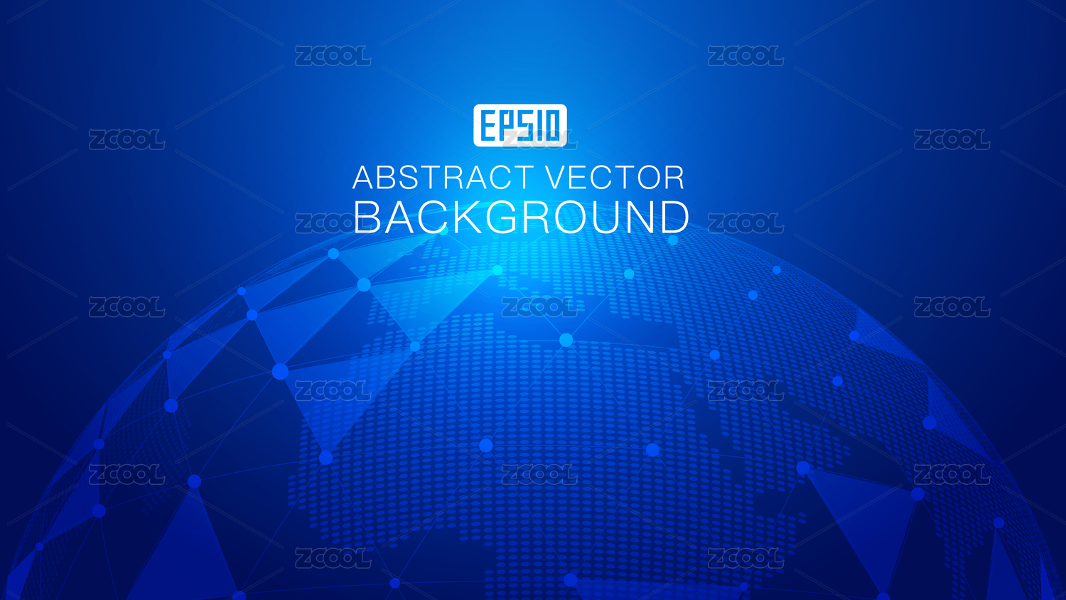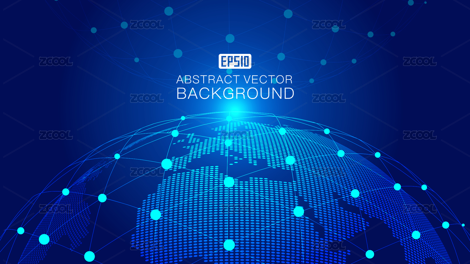 点线链接、数码地球构图深蓝科技效果的地球矢量元素