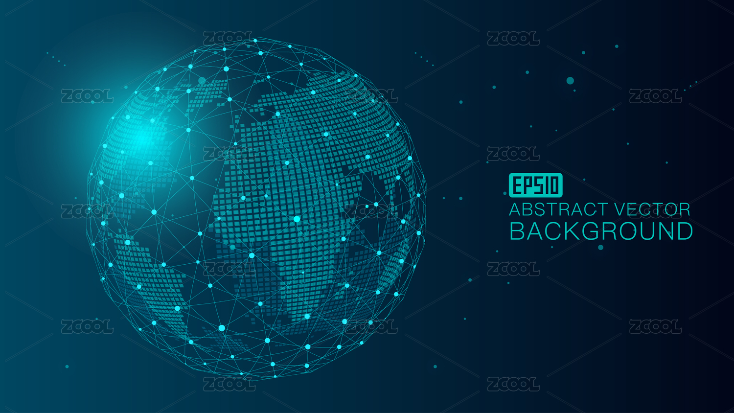 数码地球、点线面链接结合组成发光地球科技背景,科技效果的地球矢量元素
