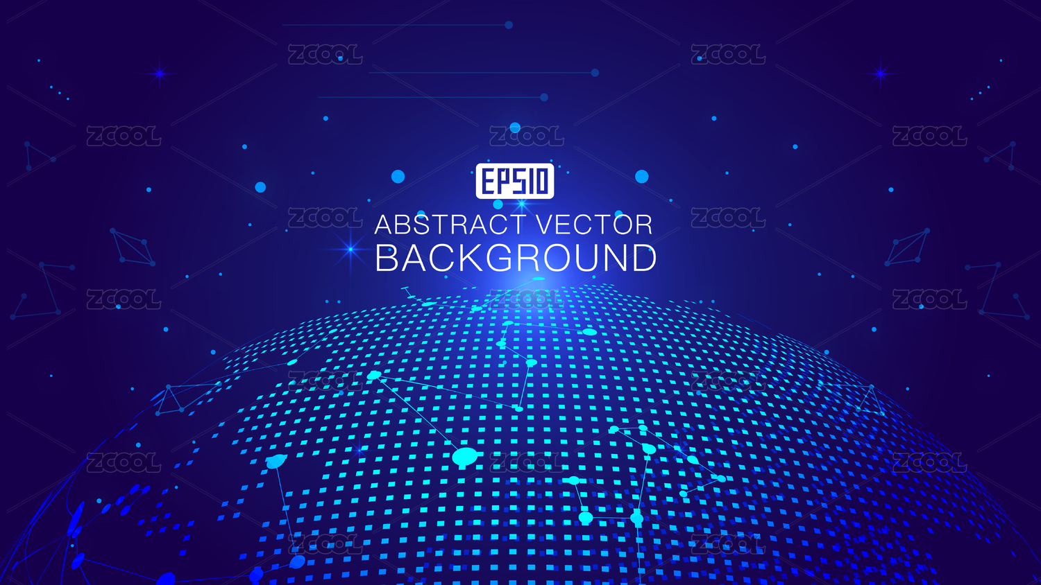 点线链接、数码科技地球体、宇宙星空、深蓝科技效果地球矢量元素