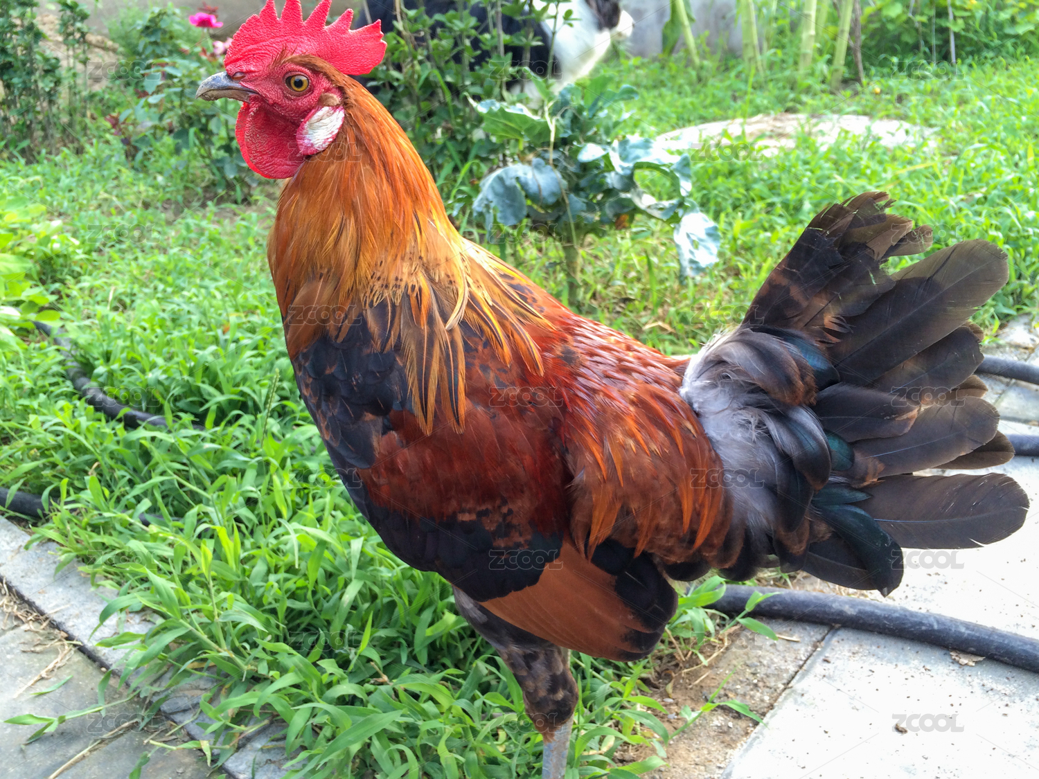 大公鸡,公鸡,站立,鸡冠,红鸡冠,金色羽毛,雄壮,注视,大鸡冠,有神